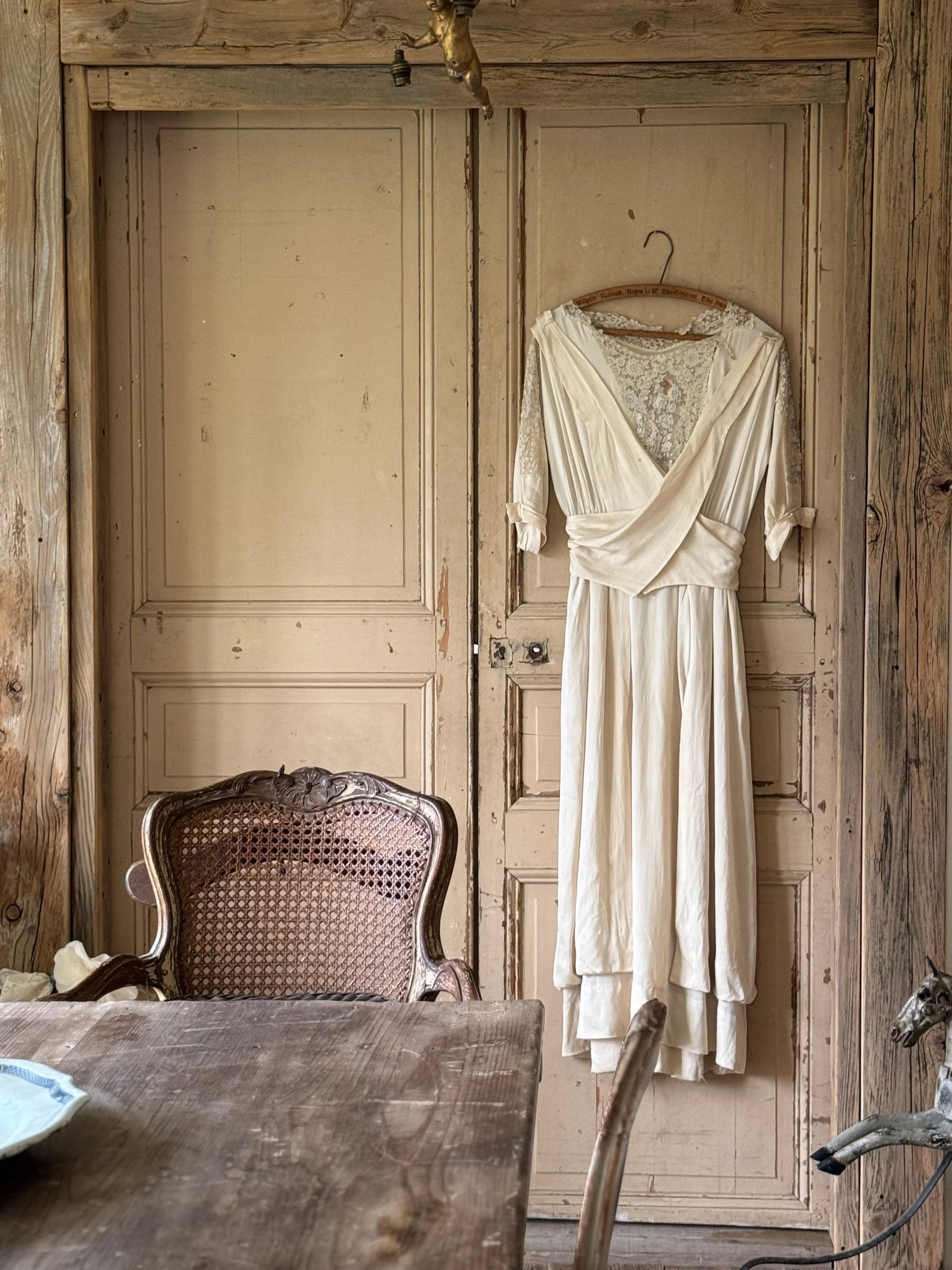 Sale アンティーク ウェディング シルクドレス ポワンドガーズ/ブリュッセルミックス