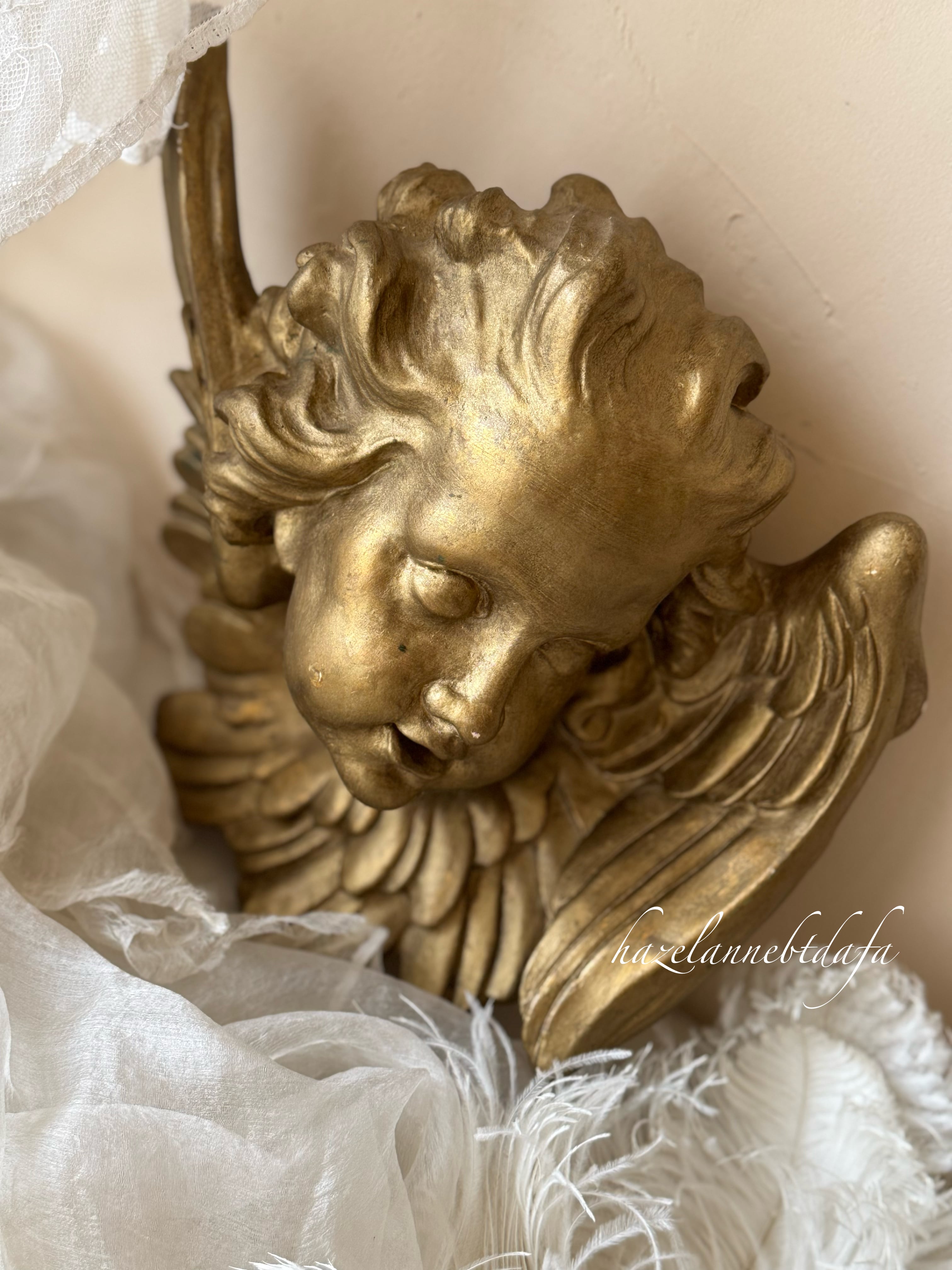 ゴールドペイントされた天使の石膏オブジェのご紹介です。