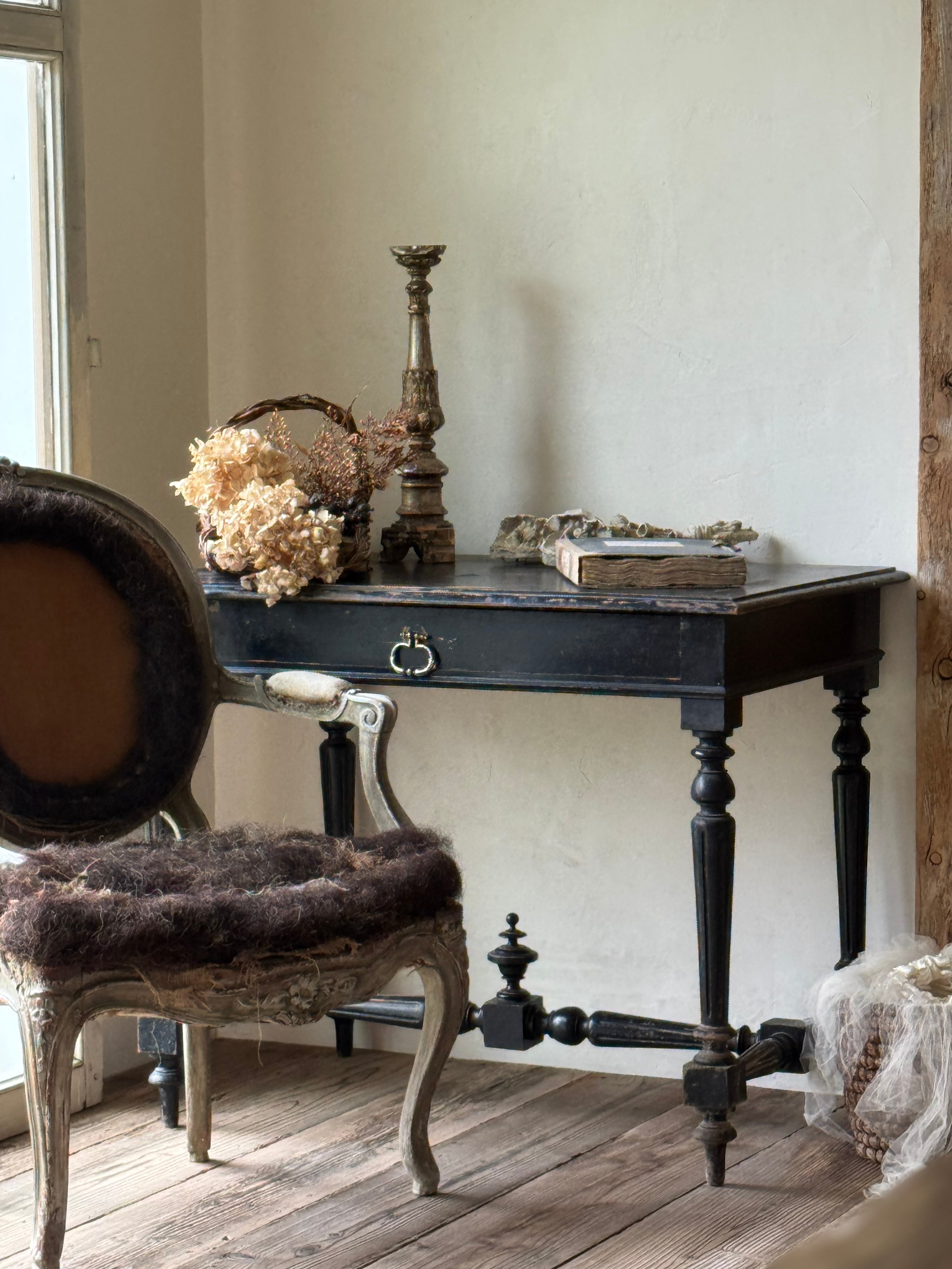 歴史的な魅力が詰まった、ナポレオンⅢスタイルのアンティークデスクです。優雅な曲線と美しい木目が印象的で、デザインと実用性を兼ね備えた一品です。引き出し付きなので、収納スペースも充実しており、デスク周りをスッキリと保つことが可能です。