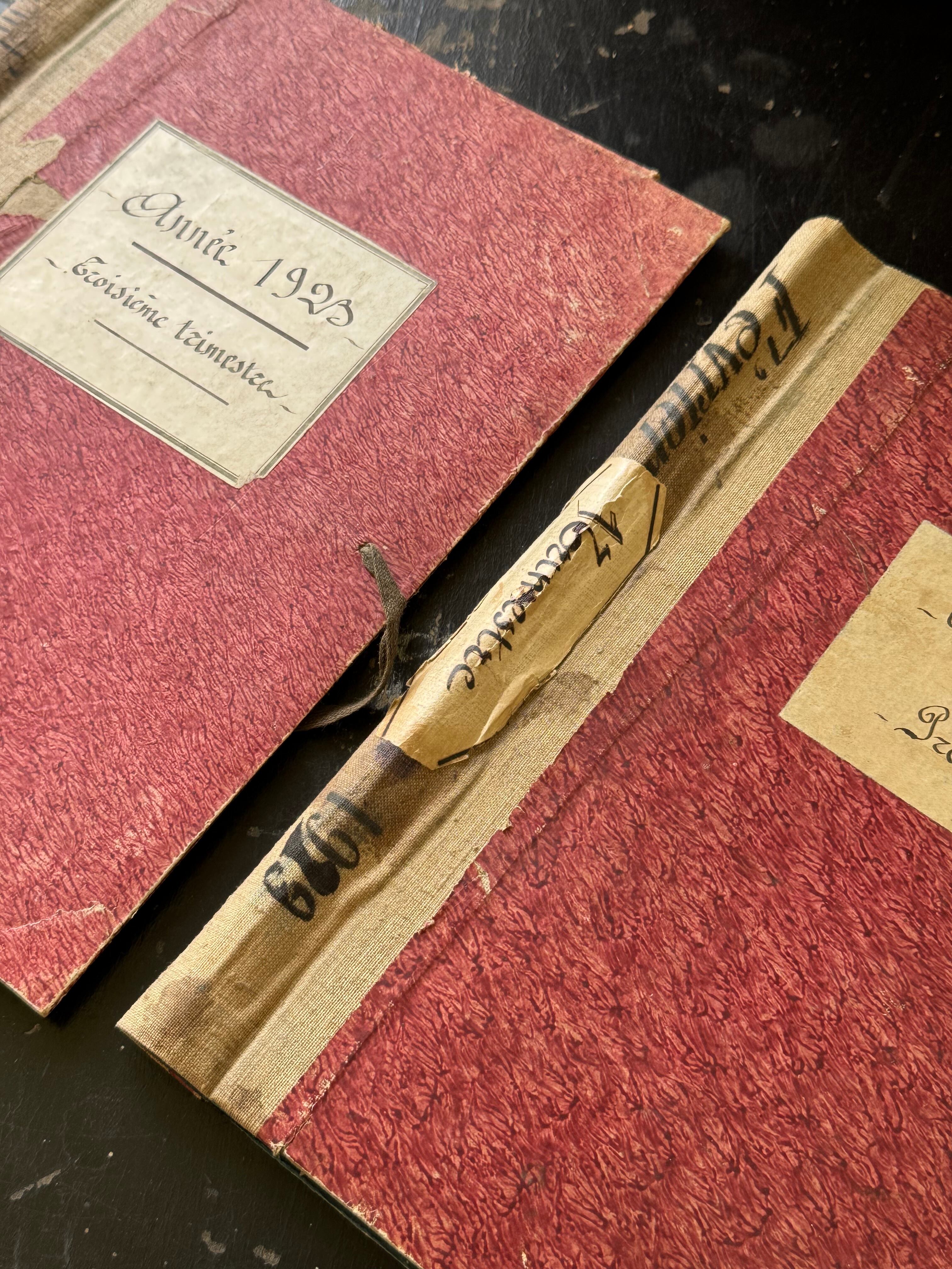 Sale フレンチアンティーク ファイル 手書き ワインレッド