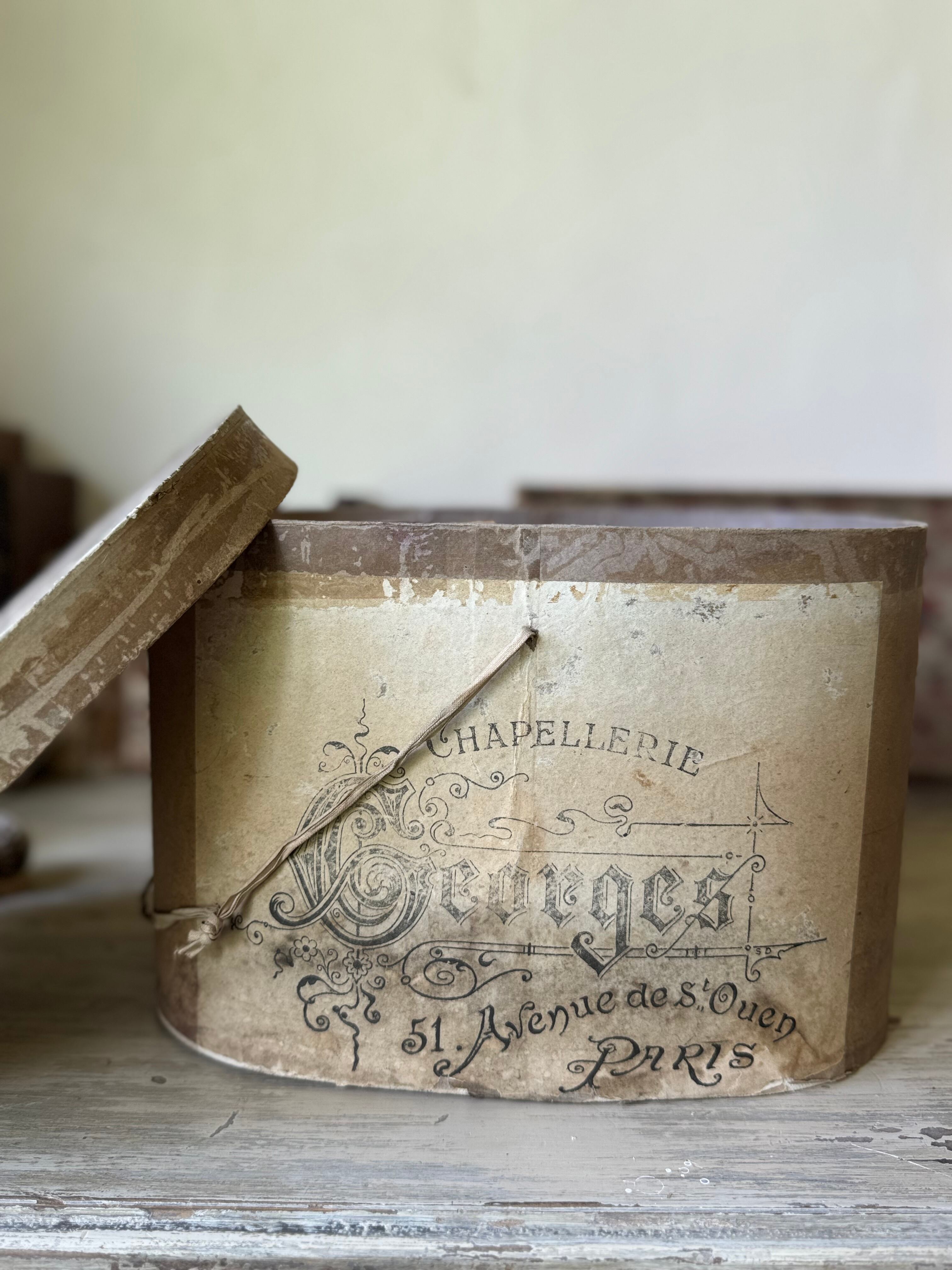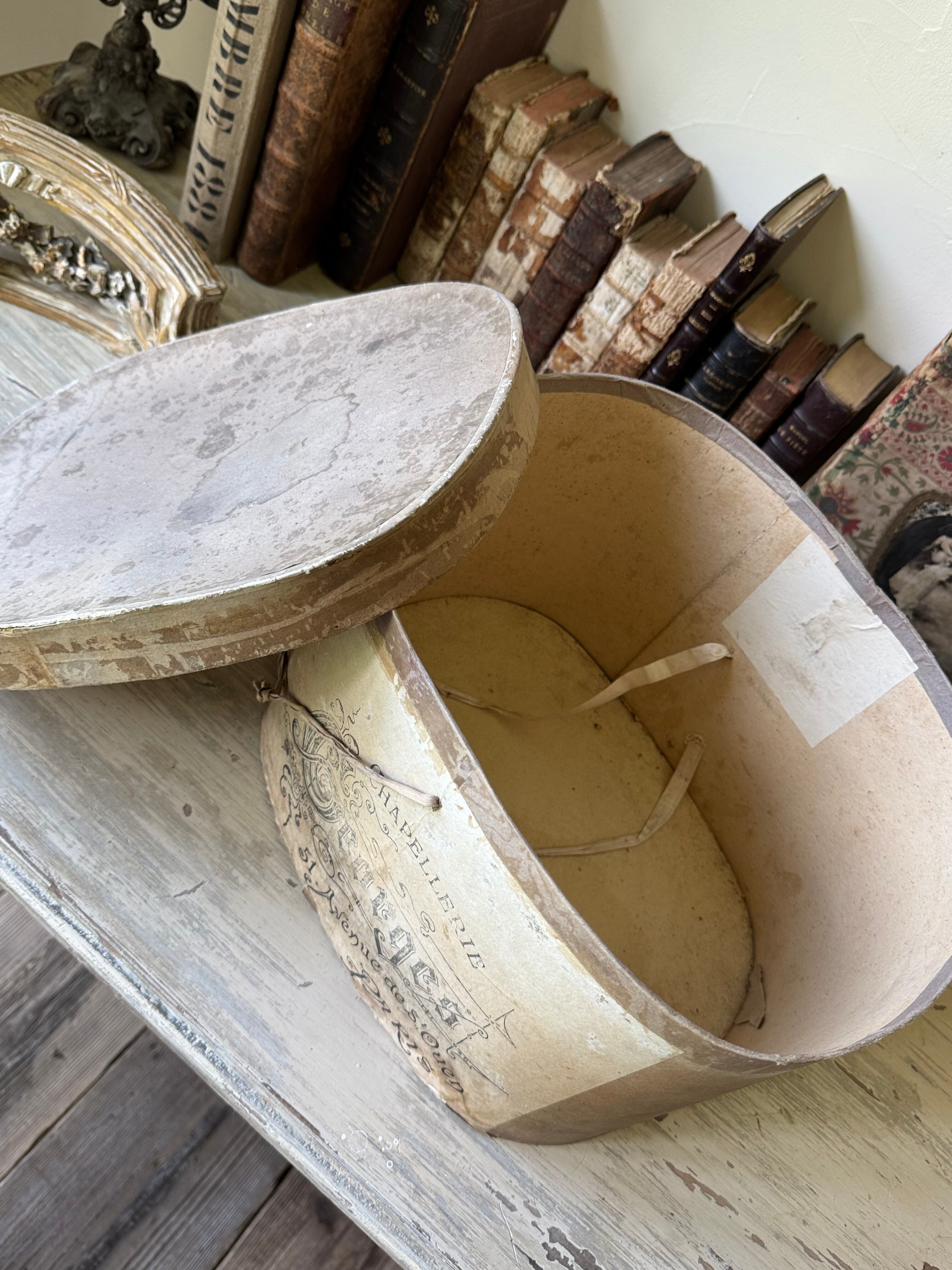 美しく退廃したラベルの雰囲気の良さが魅力的なハットボックスです。