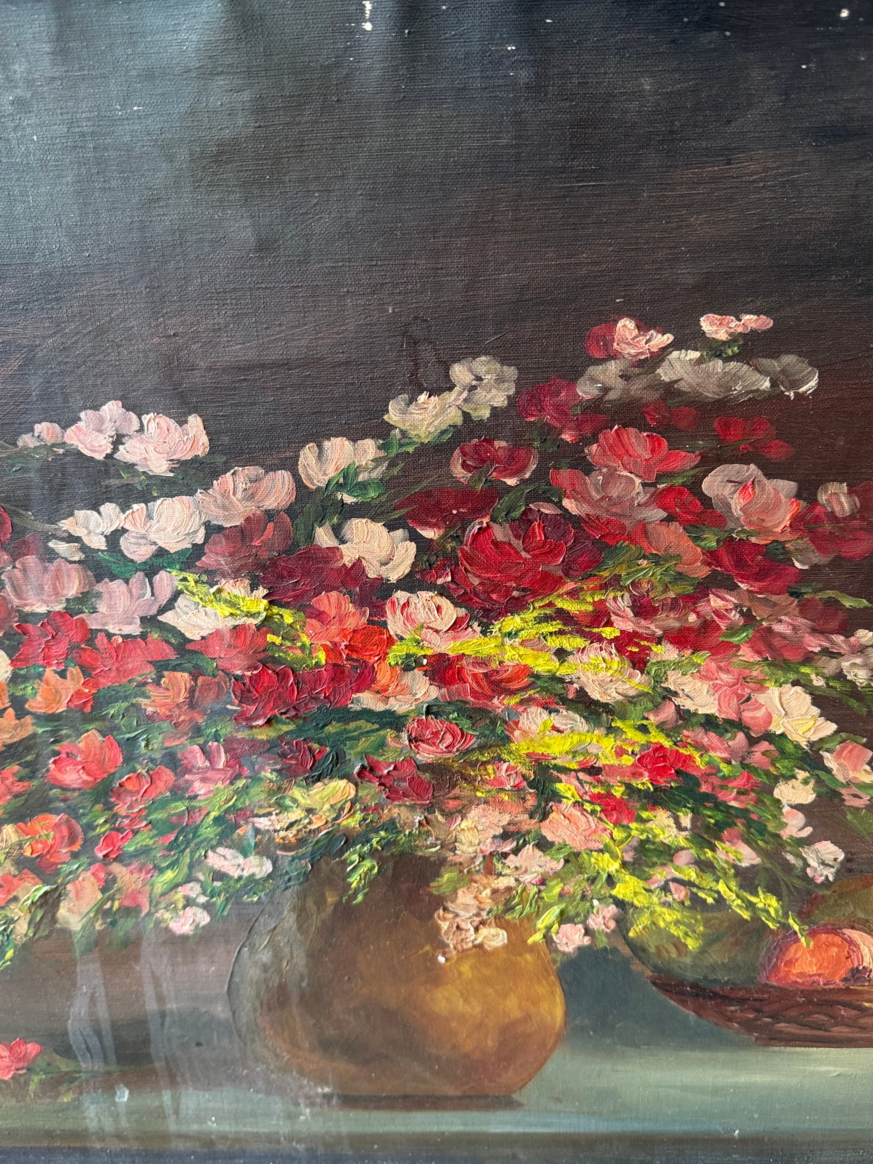■ベルギー 1900s初期 花と桃の静物画 油絵