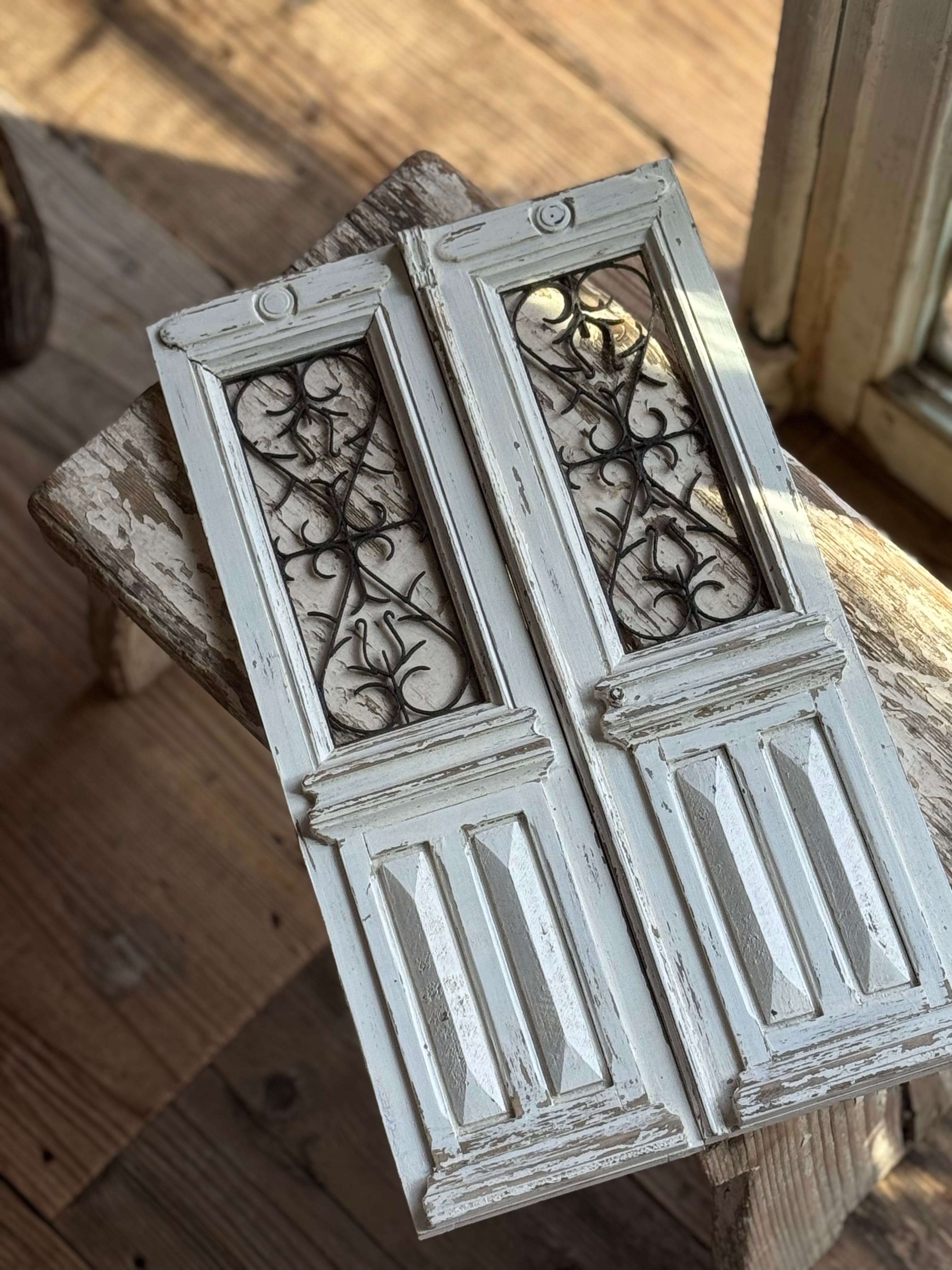 ミニチュア アイアンドア シャビーシックホワイト フレンチアンティークスタイル