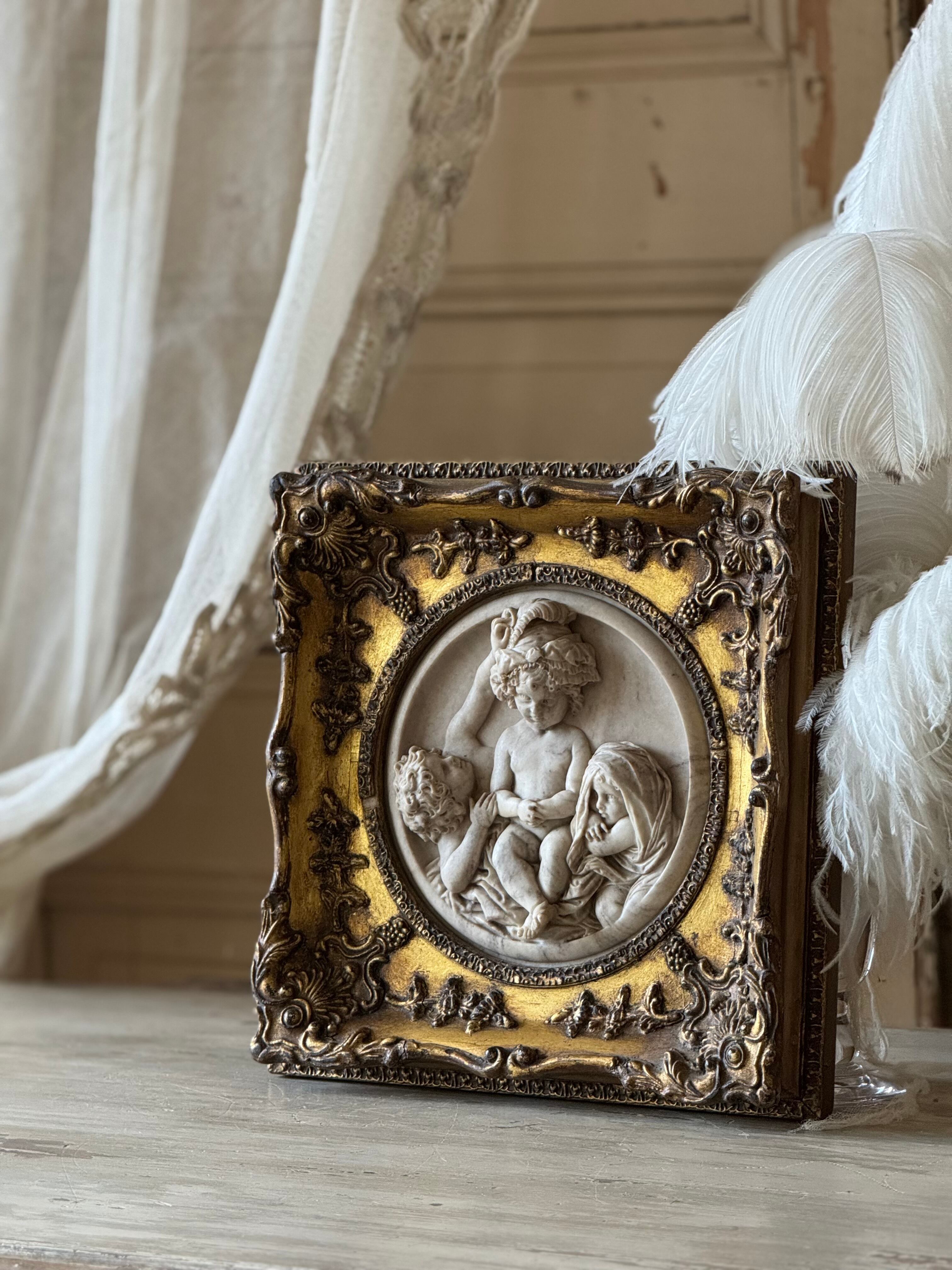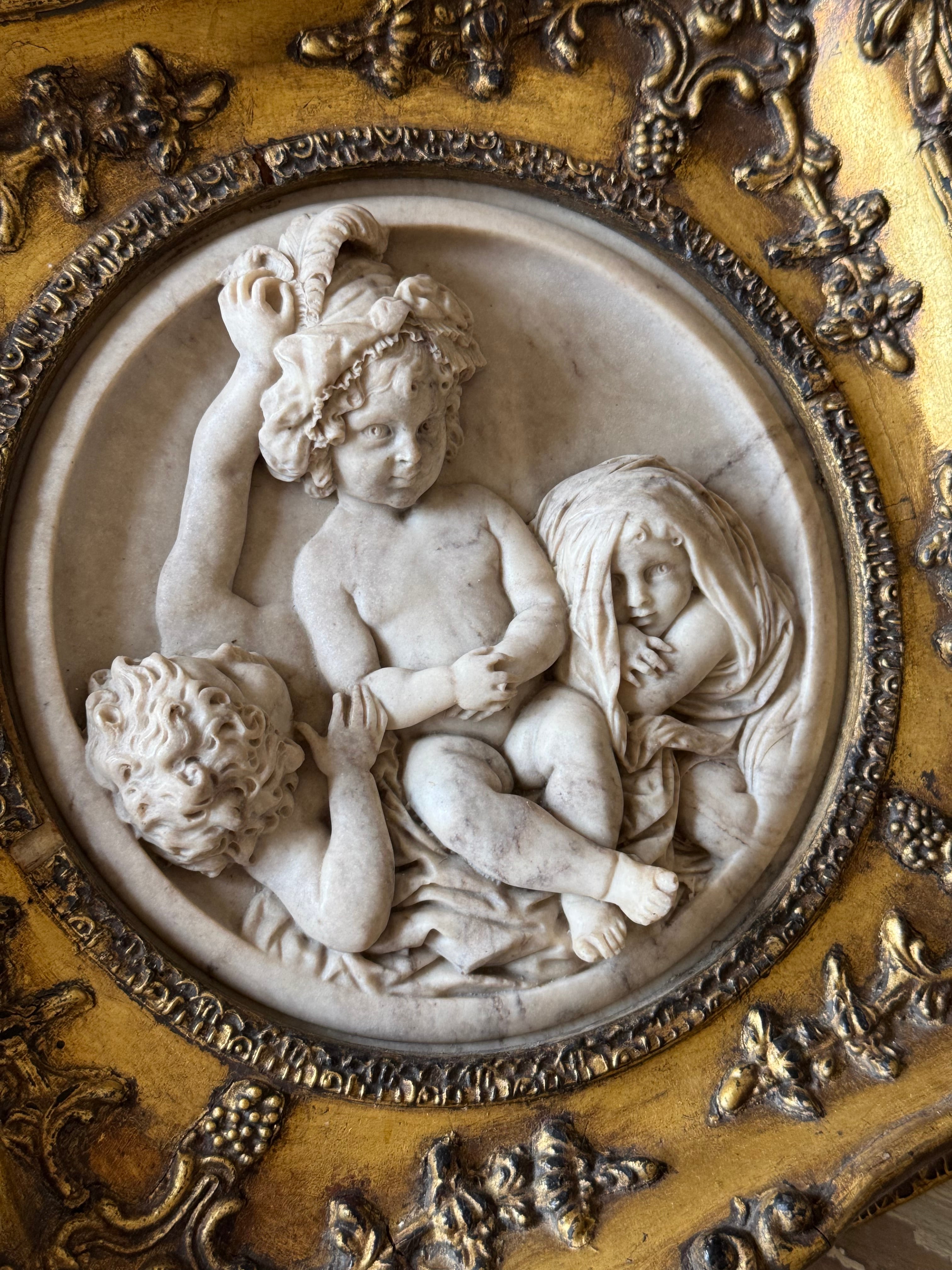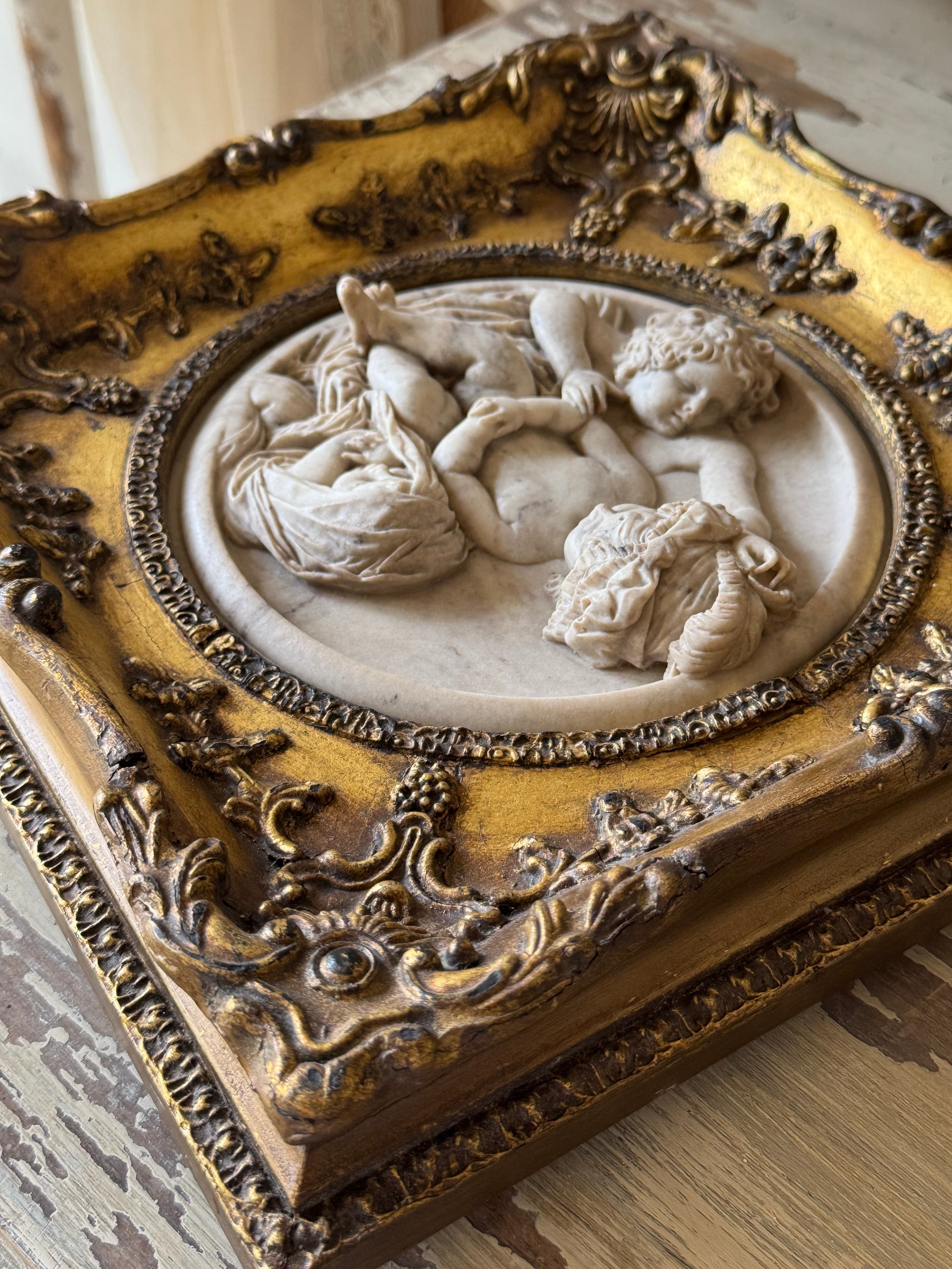 19世紀 Italian marble 3 cherub plaque in beautiful gilt frame