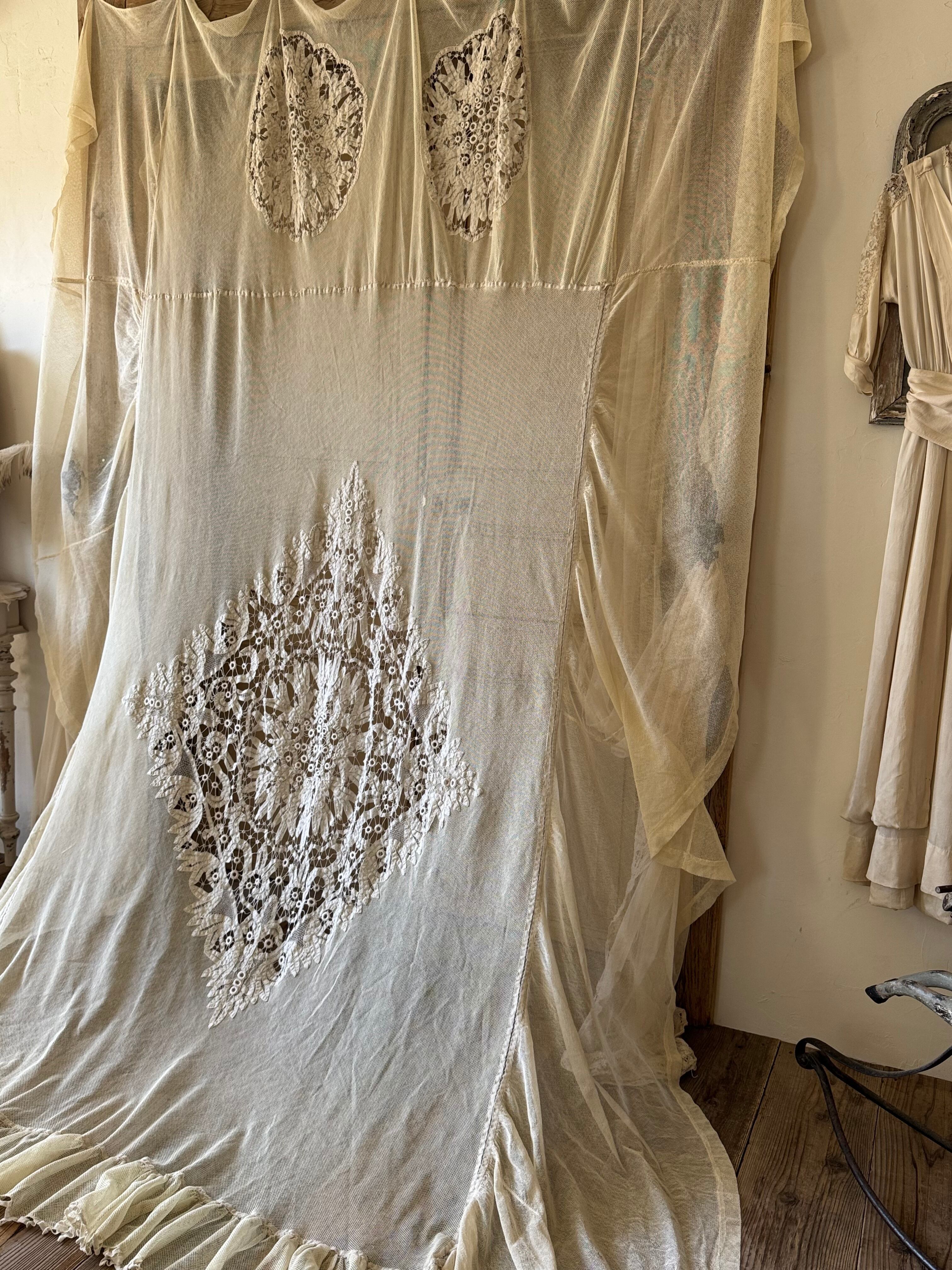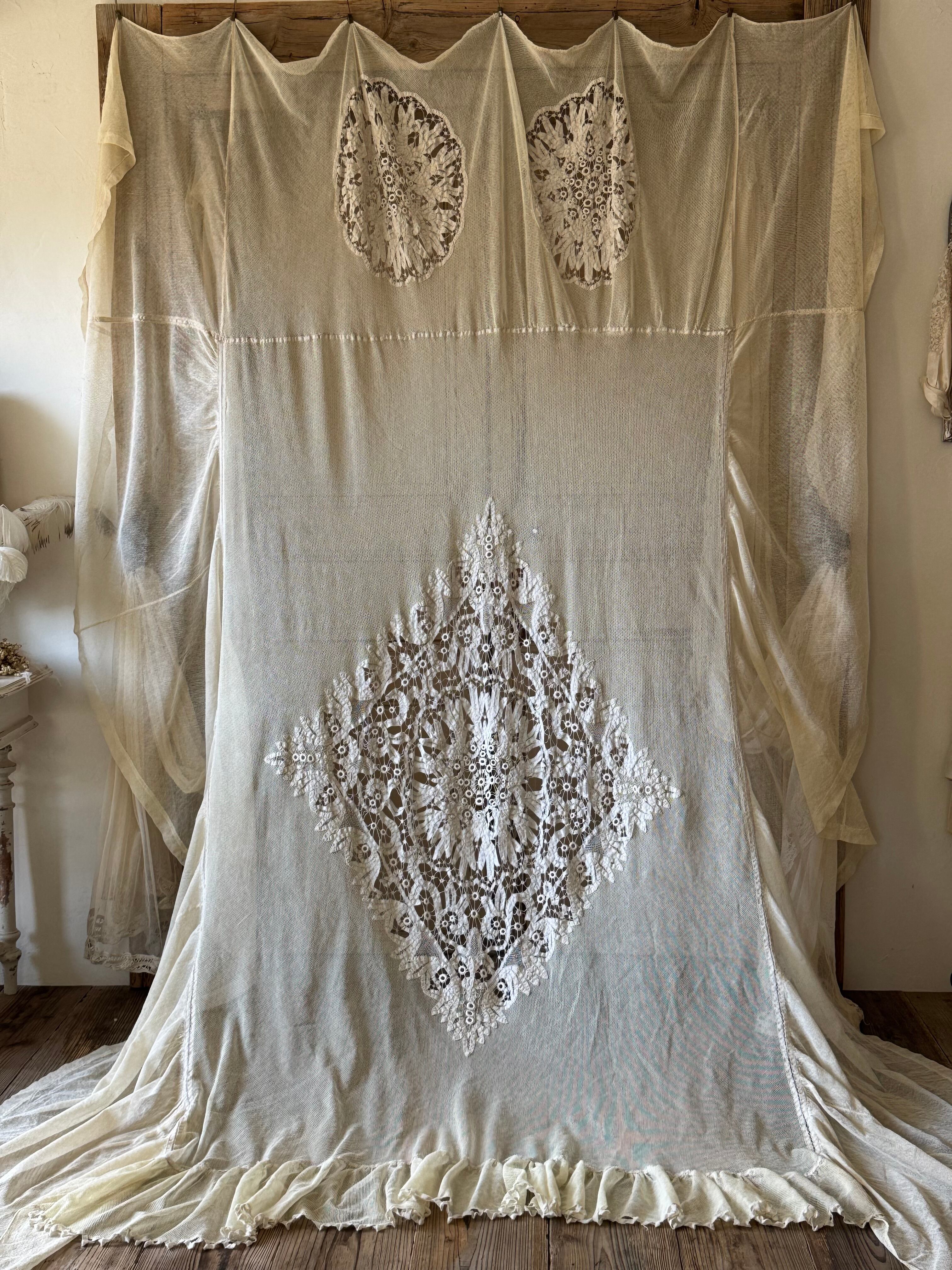 20世紀初期 フレンチアンティーク バテンレース ベッドスプレッド カバー