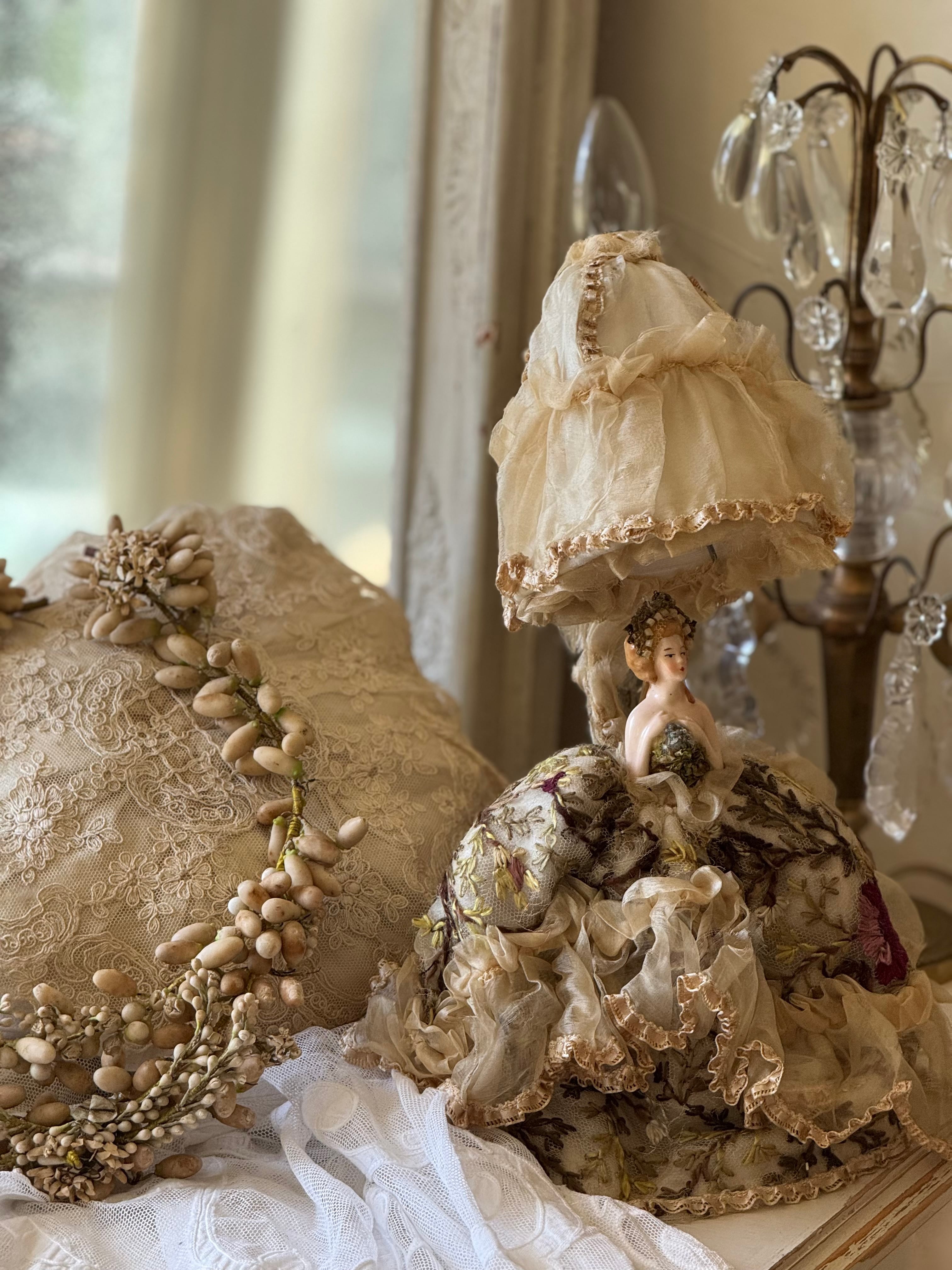 ■1900s初期 フランスアンティーク 天蓋付き ポーセリンハーフドール ブドワール ランプシェード