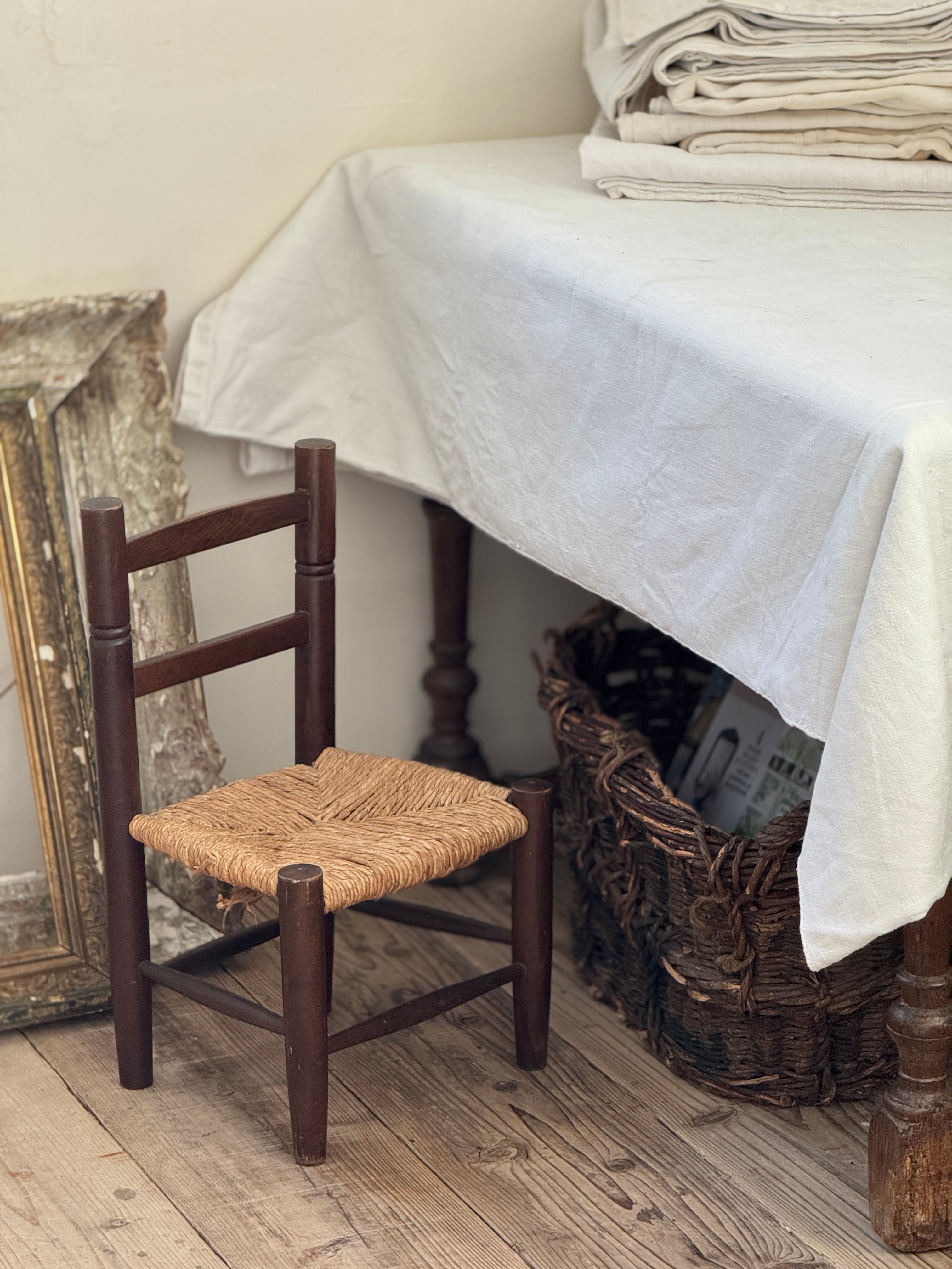 ◾️フレンチアンティークラッシュシート(わら編み座面)チャイルドチェア(子供用椅子)またはドールチェア