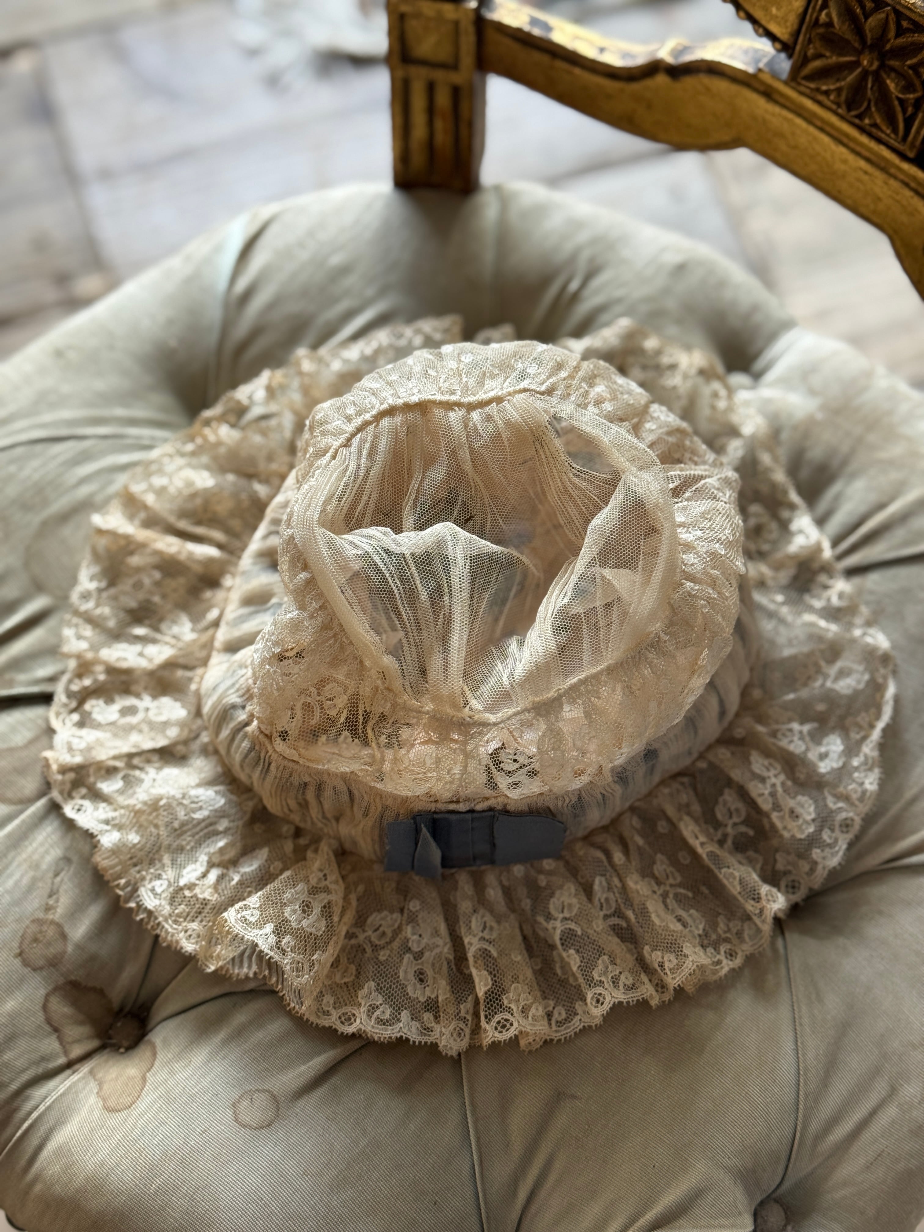 フランスアンティーク ブドワール ナイト レース ボンネット