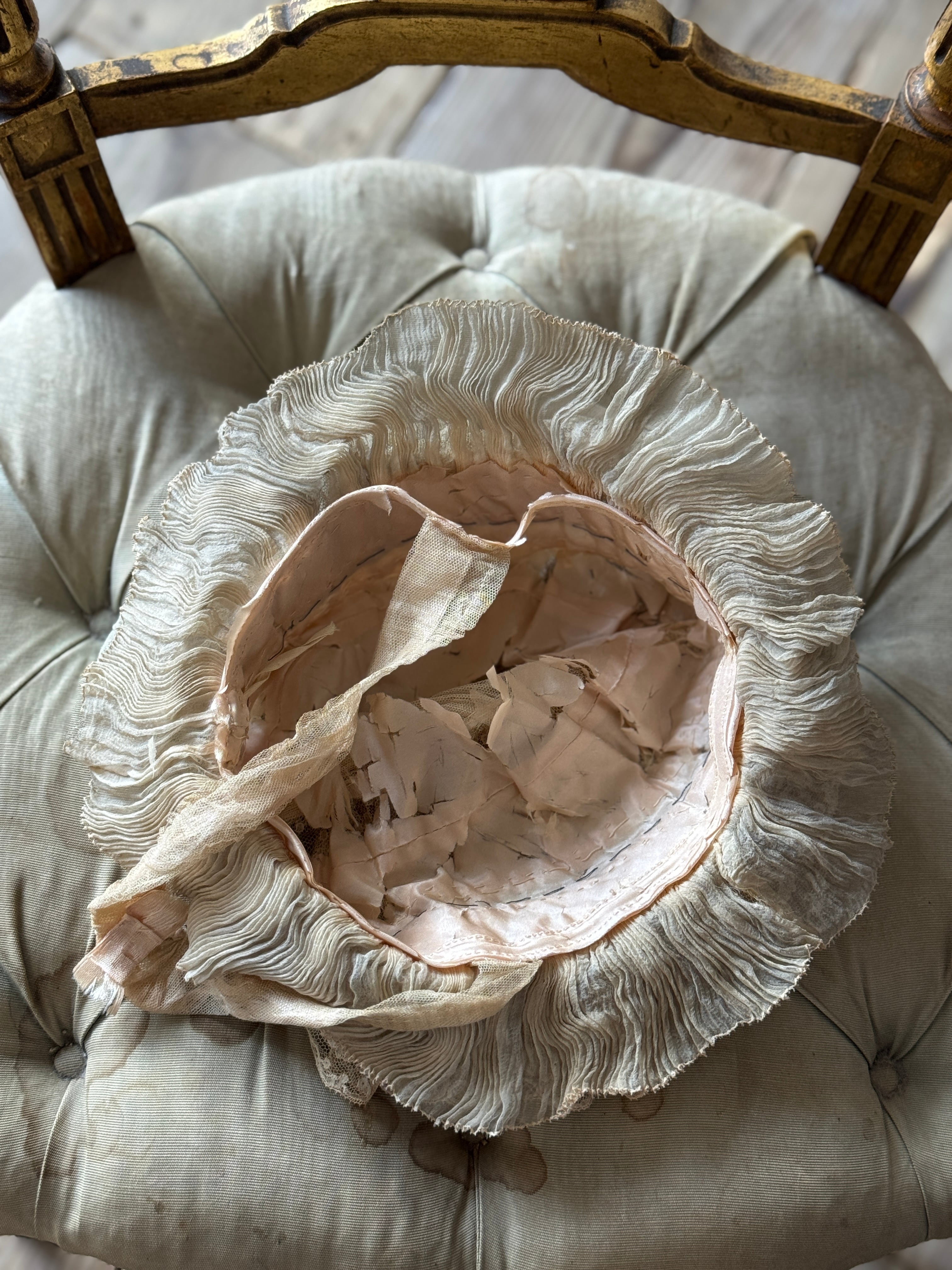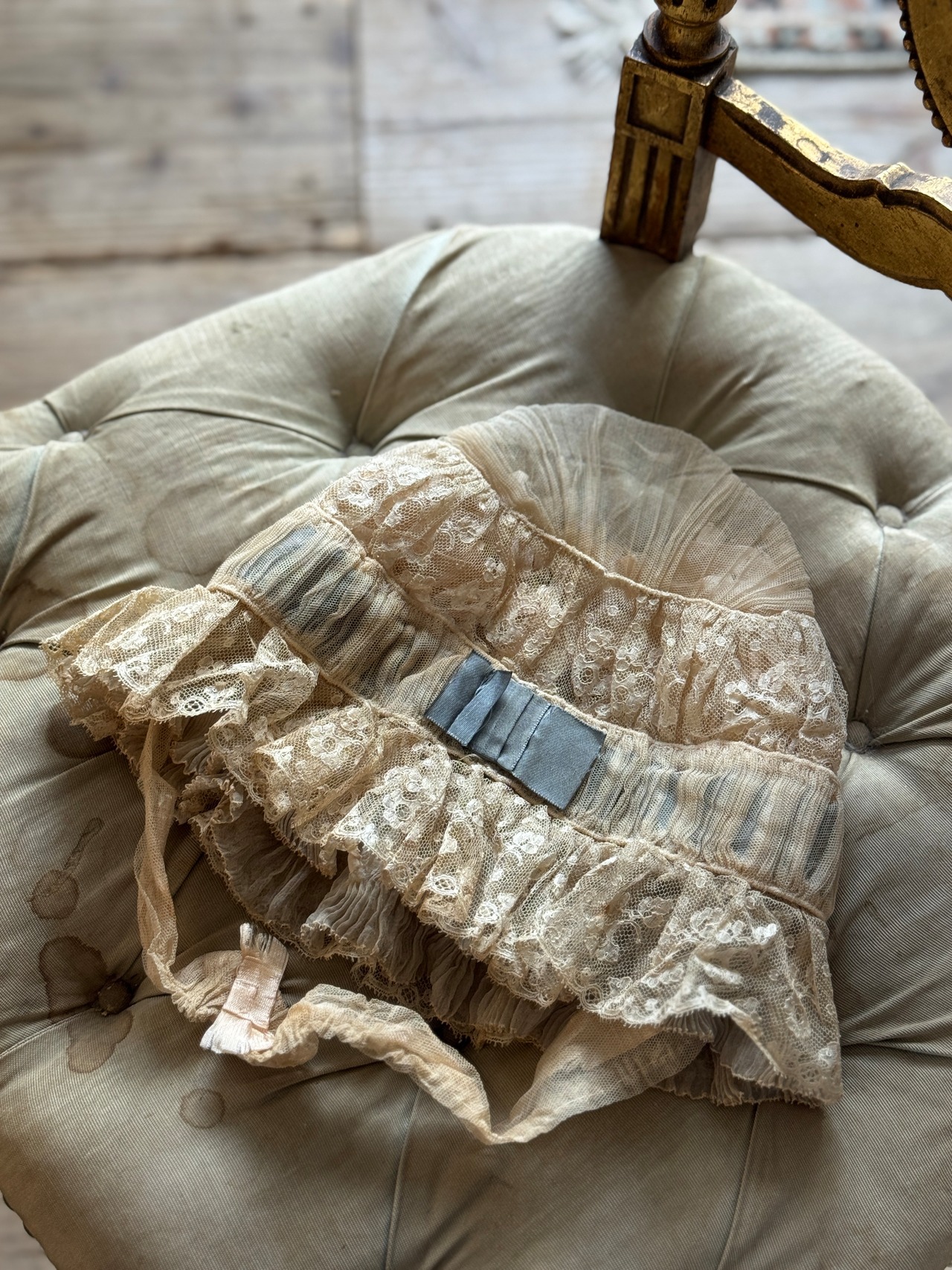 19世紀末から20世紀初頭頃のフランスアンティークのナイトボンネットです。