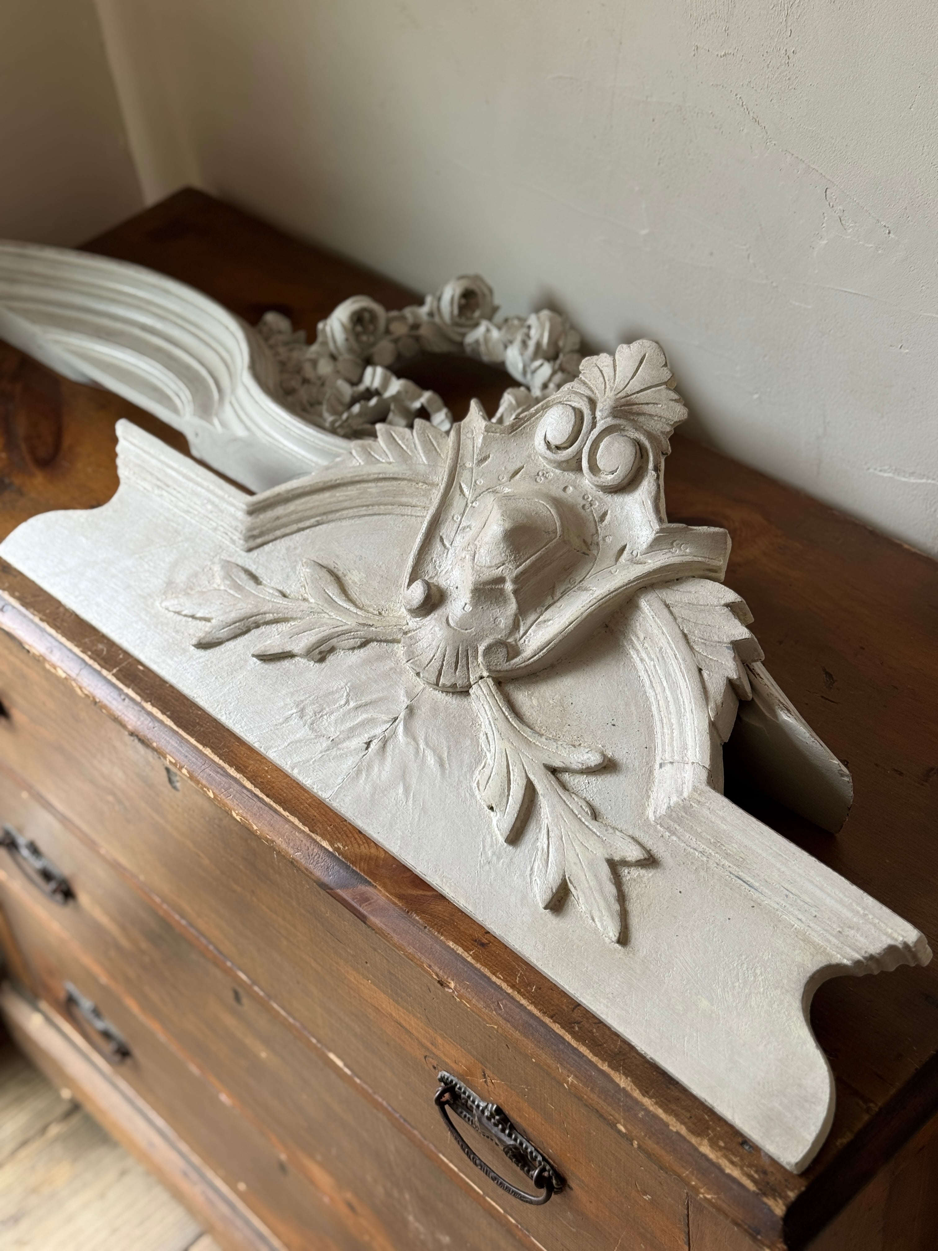 ブルジョア階級の邸宅で使われていた家具(アルモワールや鏡)の最上部を飾っていた彫刻パーツです。