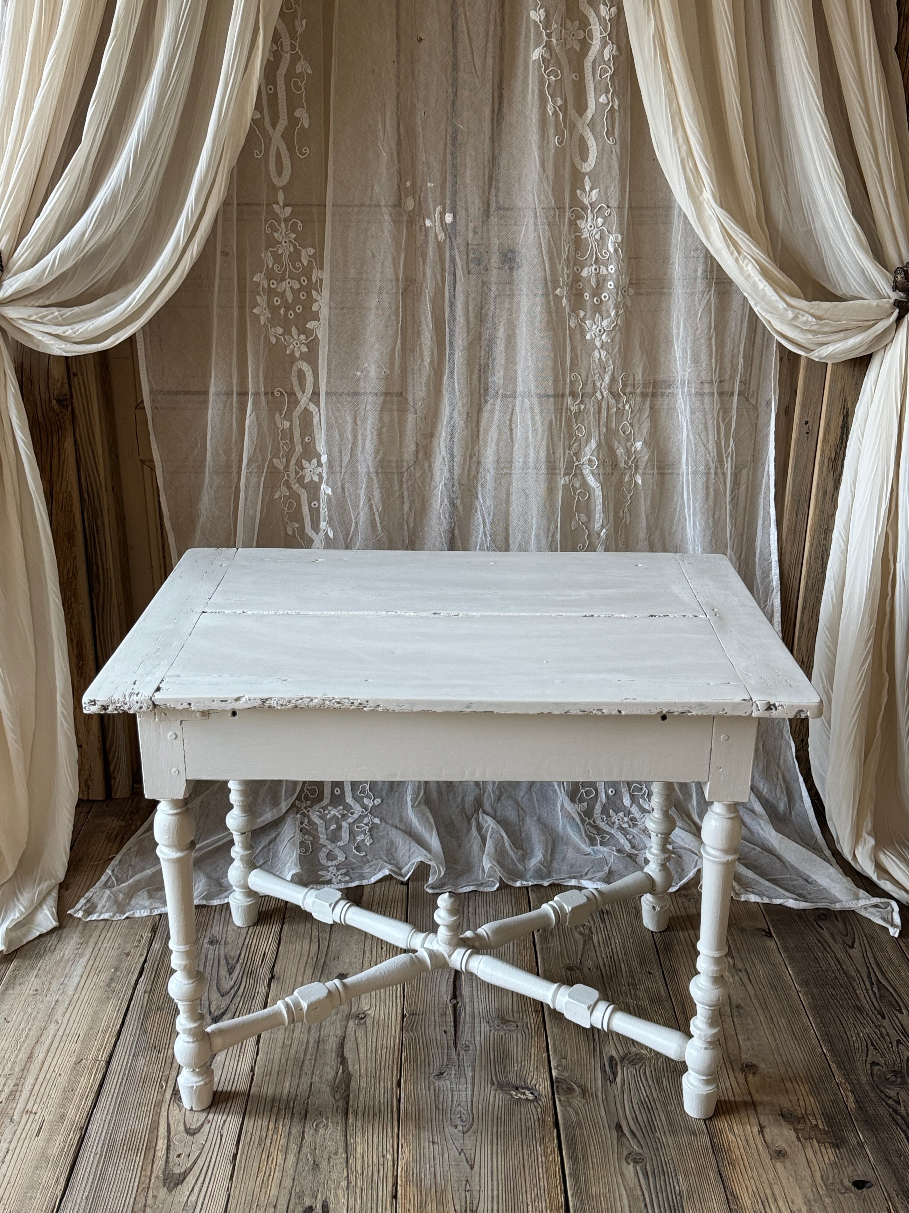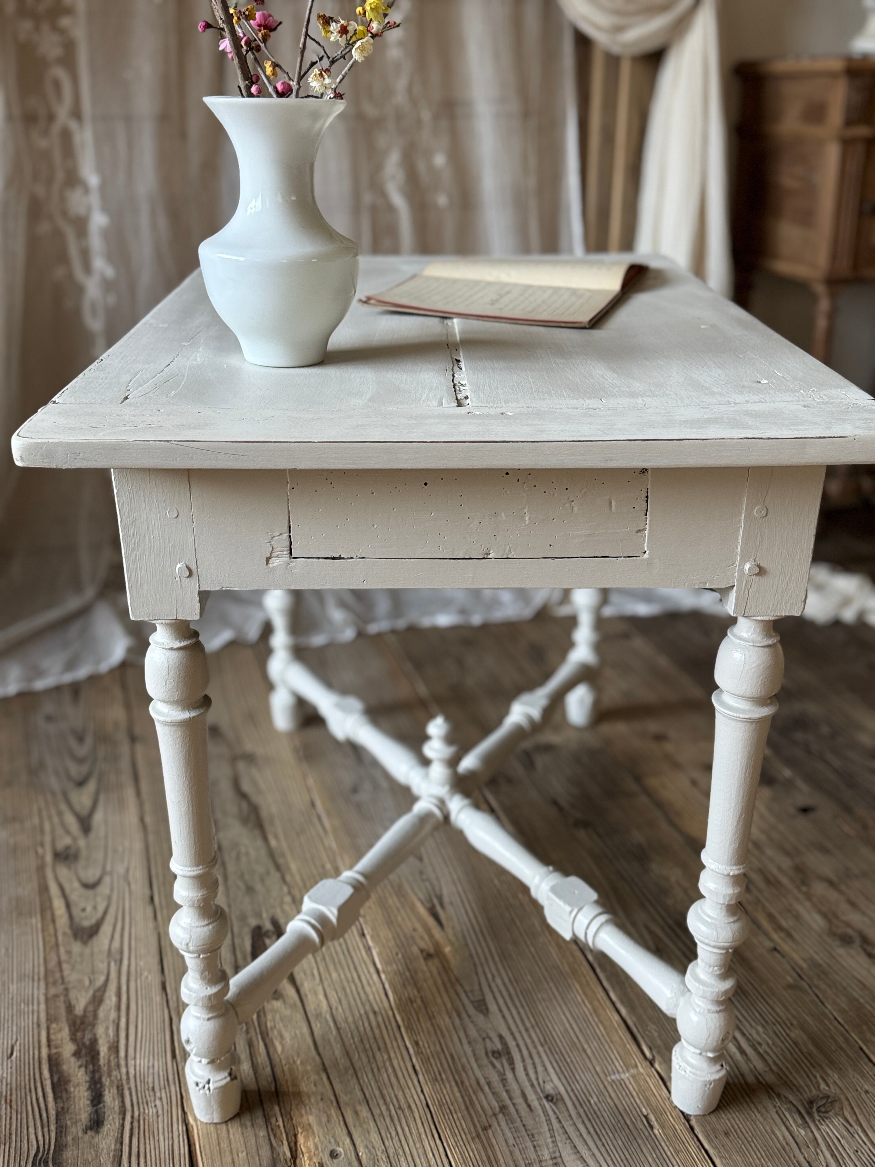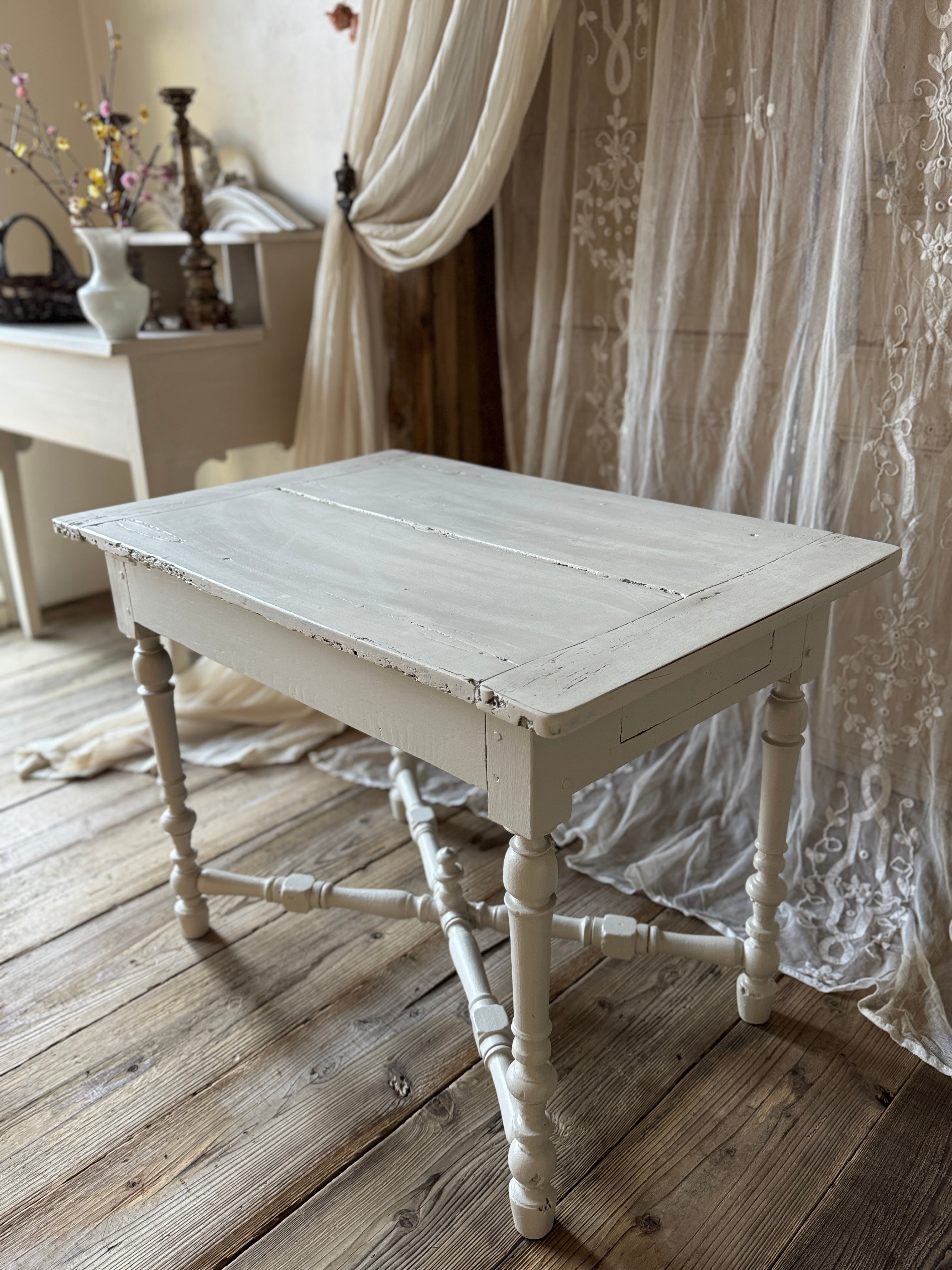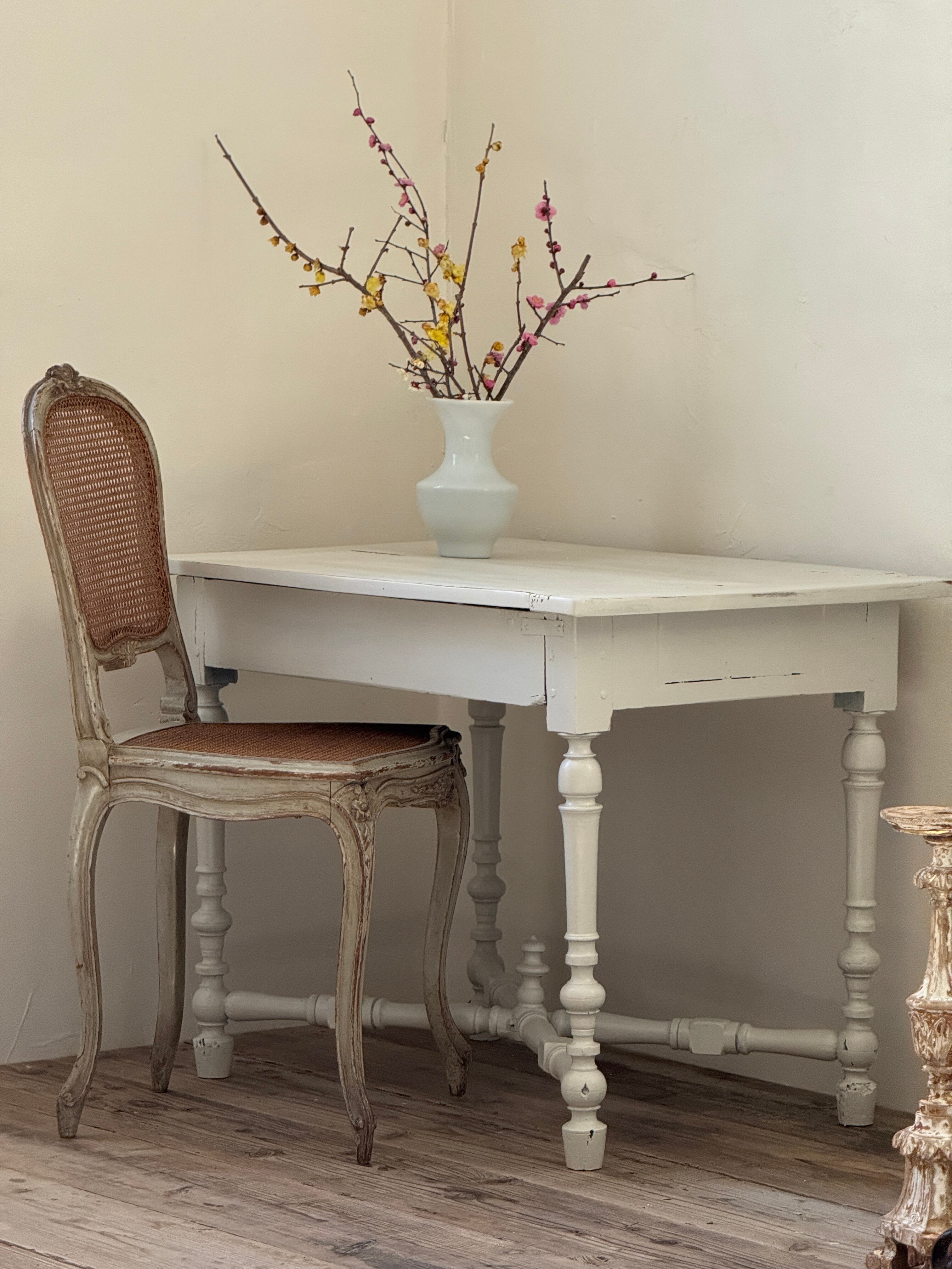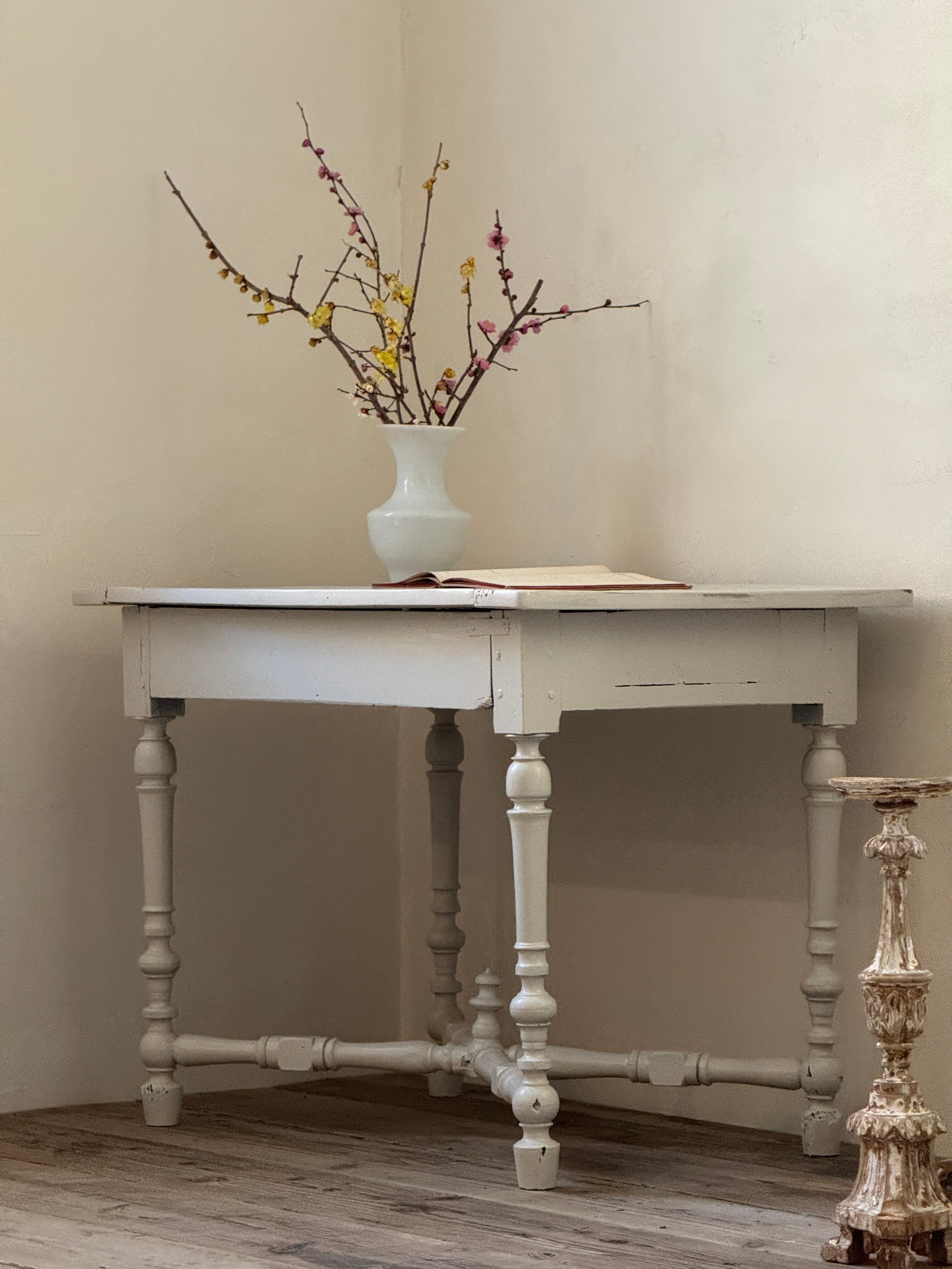 ミルクペイントが施された小ぶりなサイズのフランスアンティークのサイドテーブルです。
