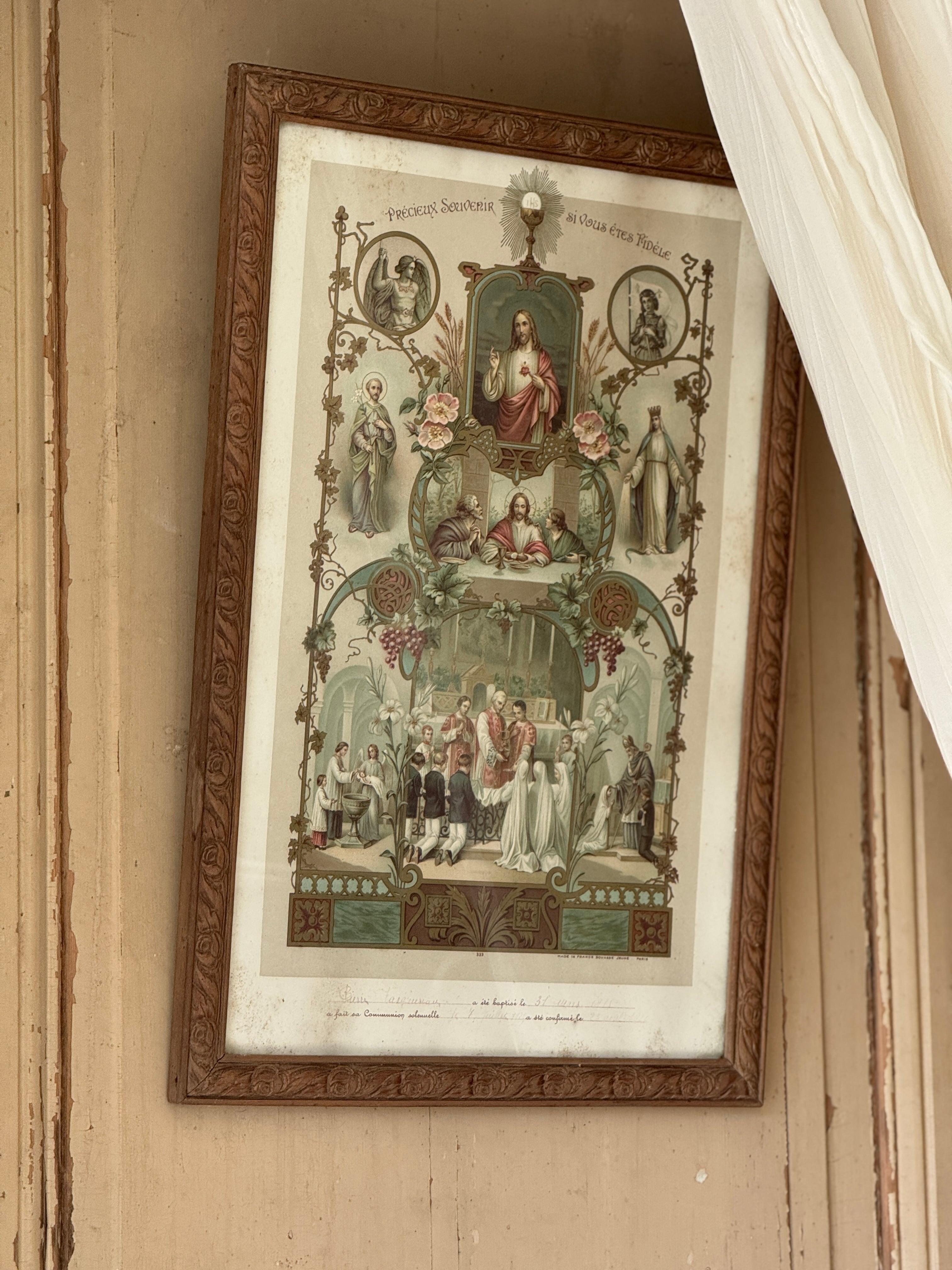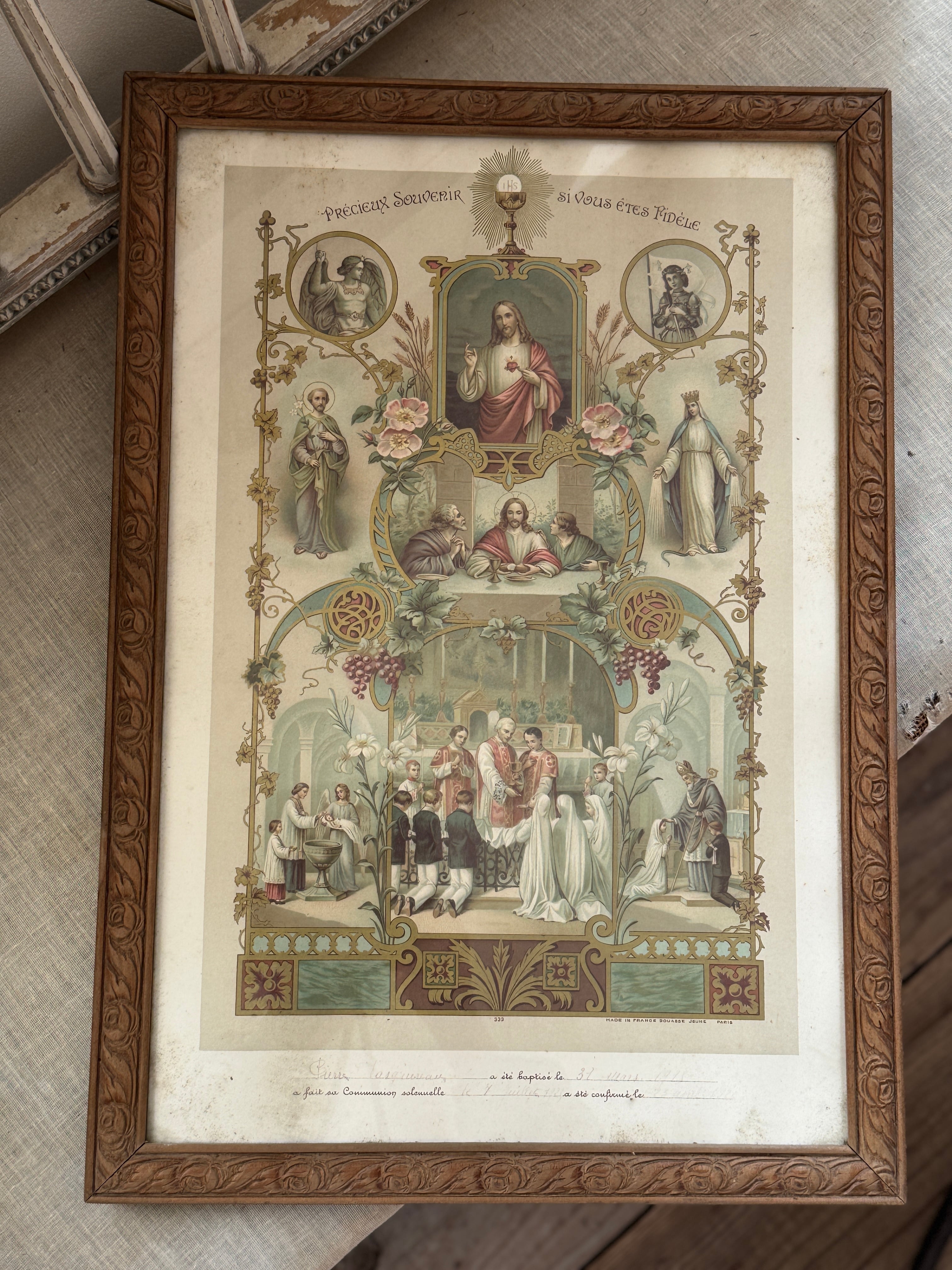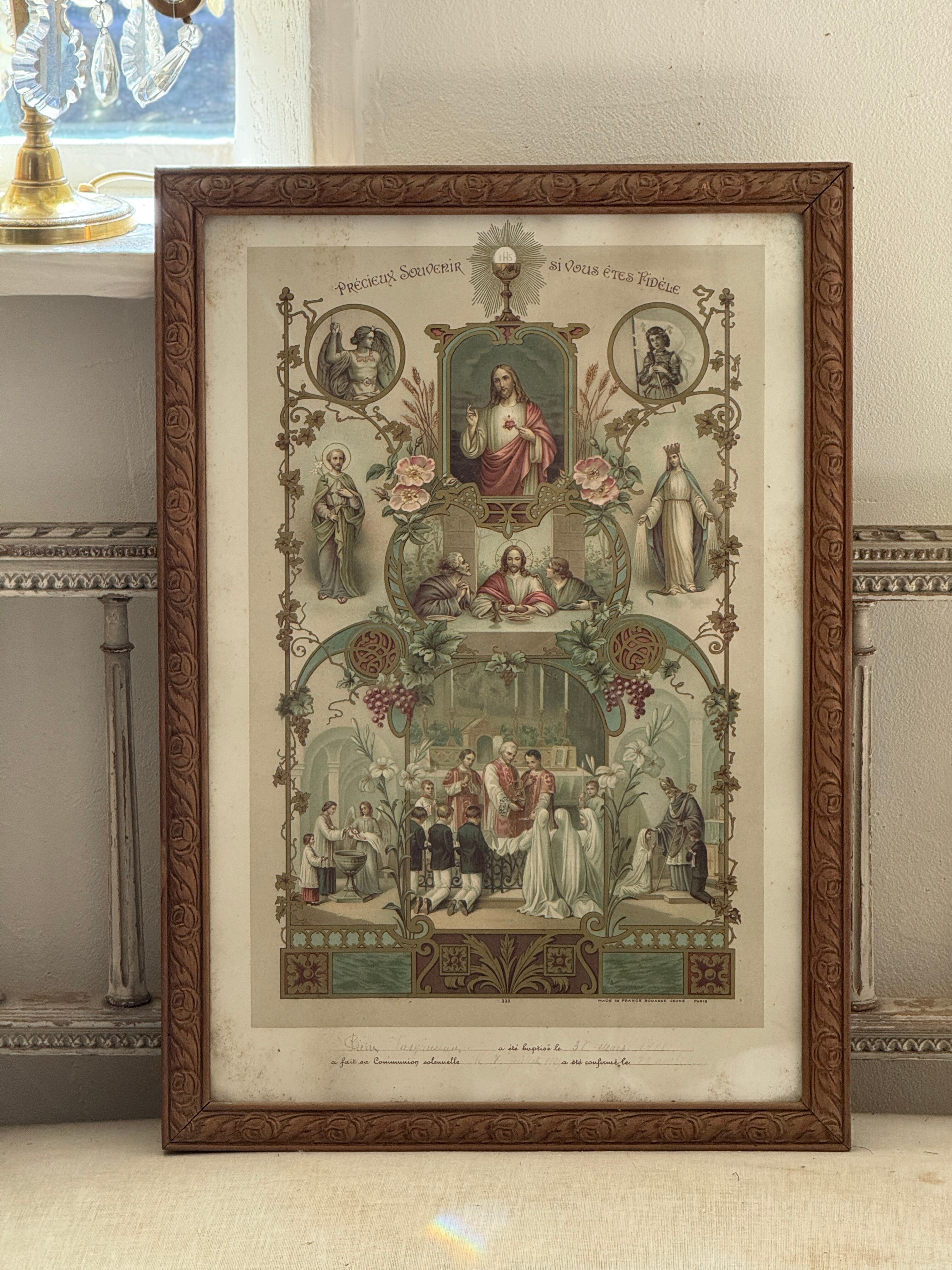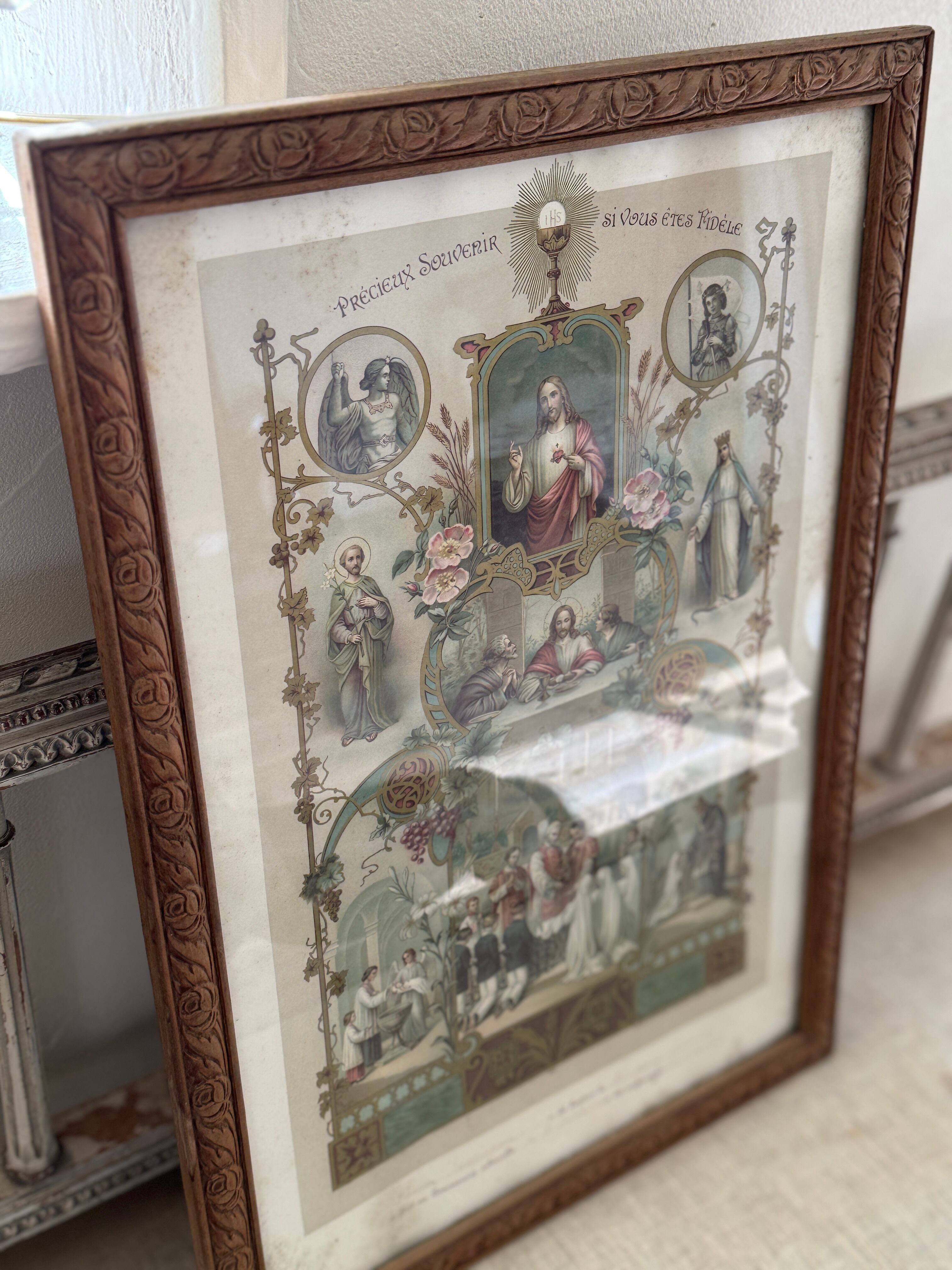 ◾️1900s初期 フランスアンティーク 初聖体拝領(Communion)の記念ガラスフレームです。