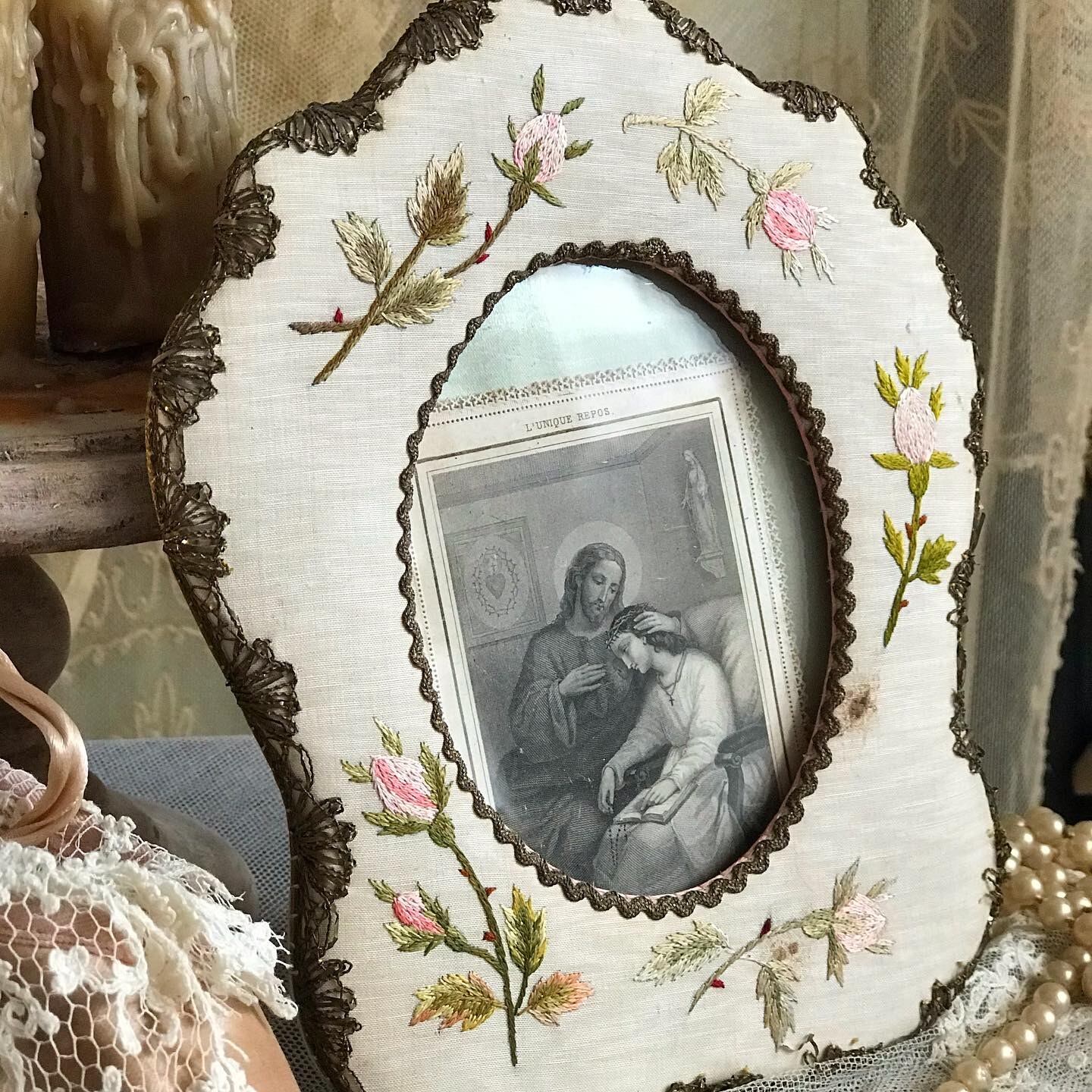 フレンチアンティーク ニードルワーク×サテンピンク フレーム