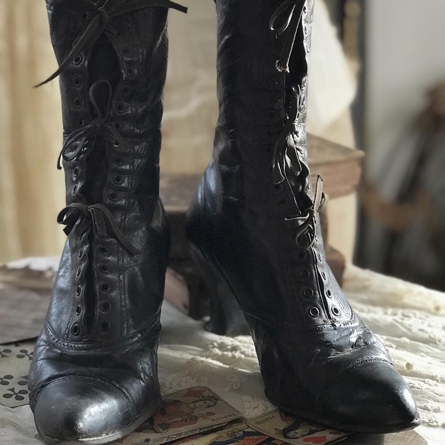 ヴィクトリアン アンティーク レザーブーツ ブラック