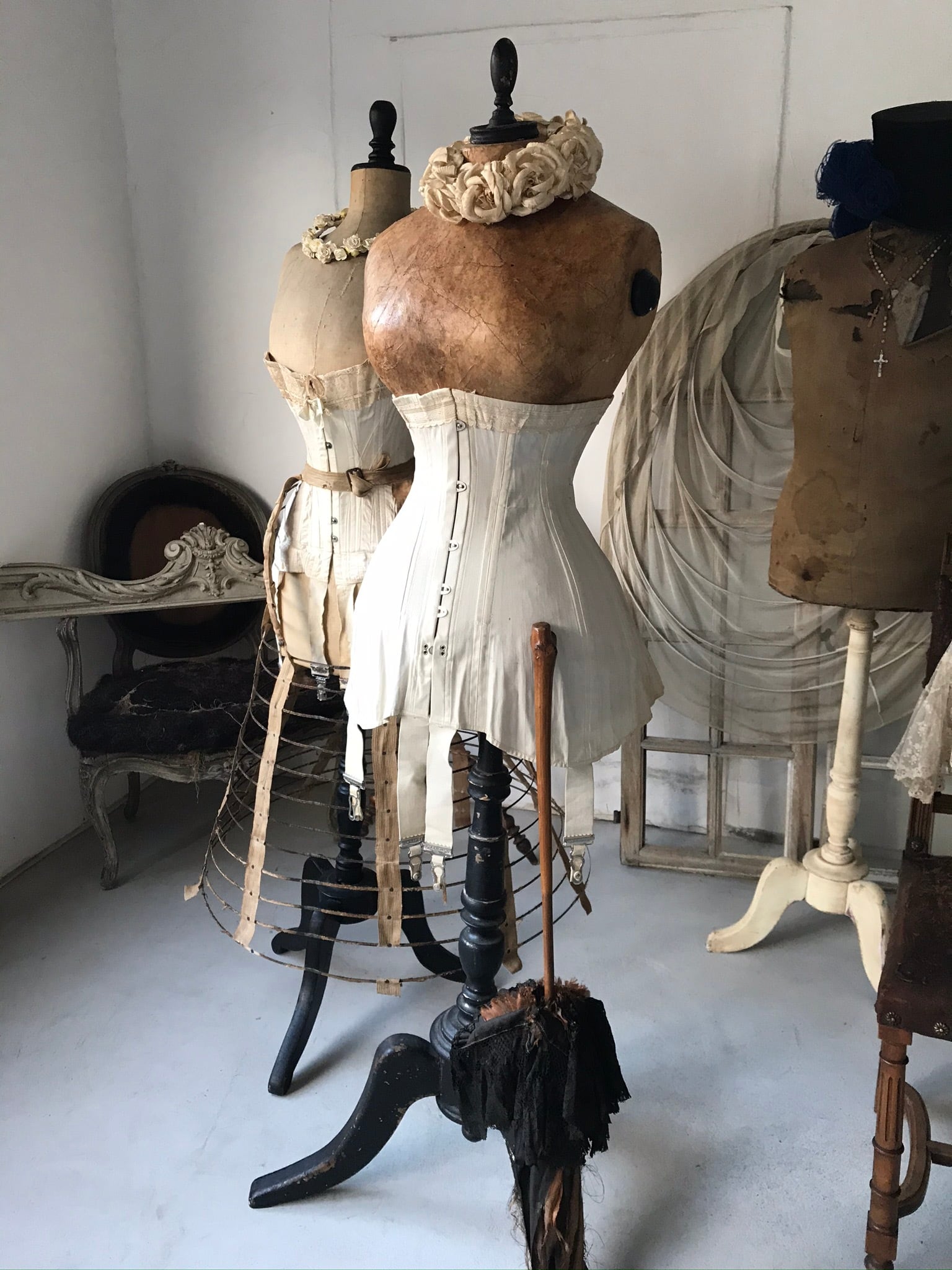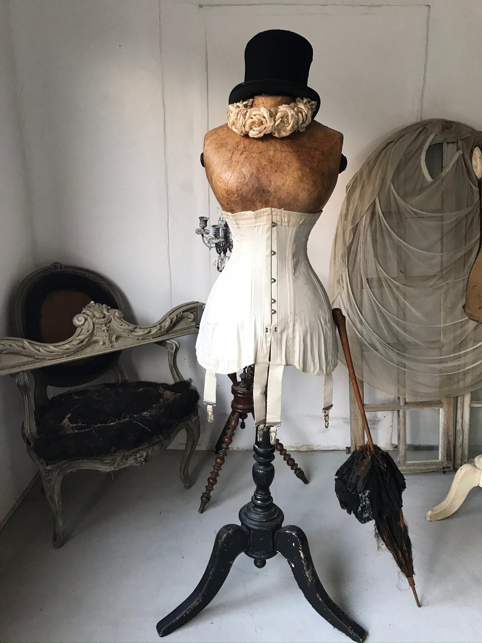 アンティーク洋書にも必ずと言っていいほど載っているガーターベルト付きのコルセット、現地でもかなり人気があるため平均6〜8万円ほどの高値で販売されています。