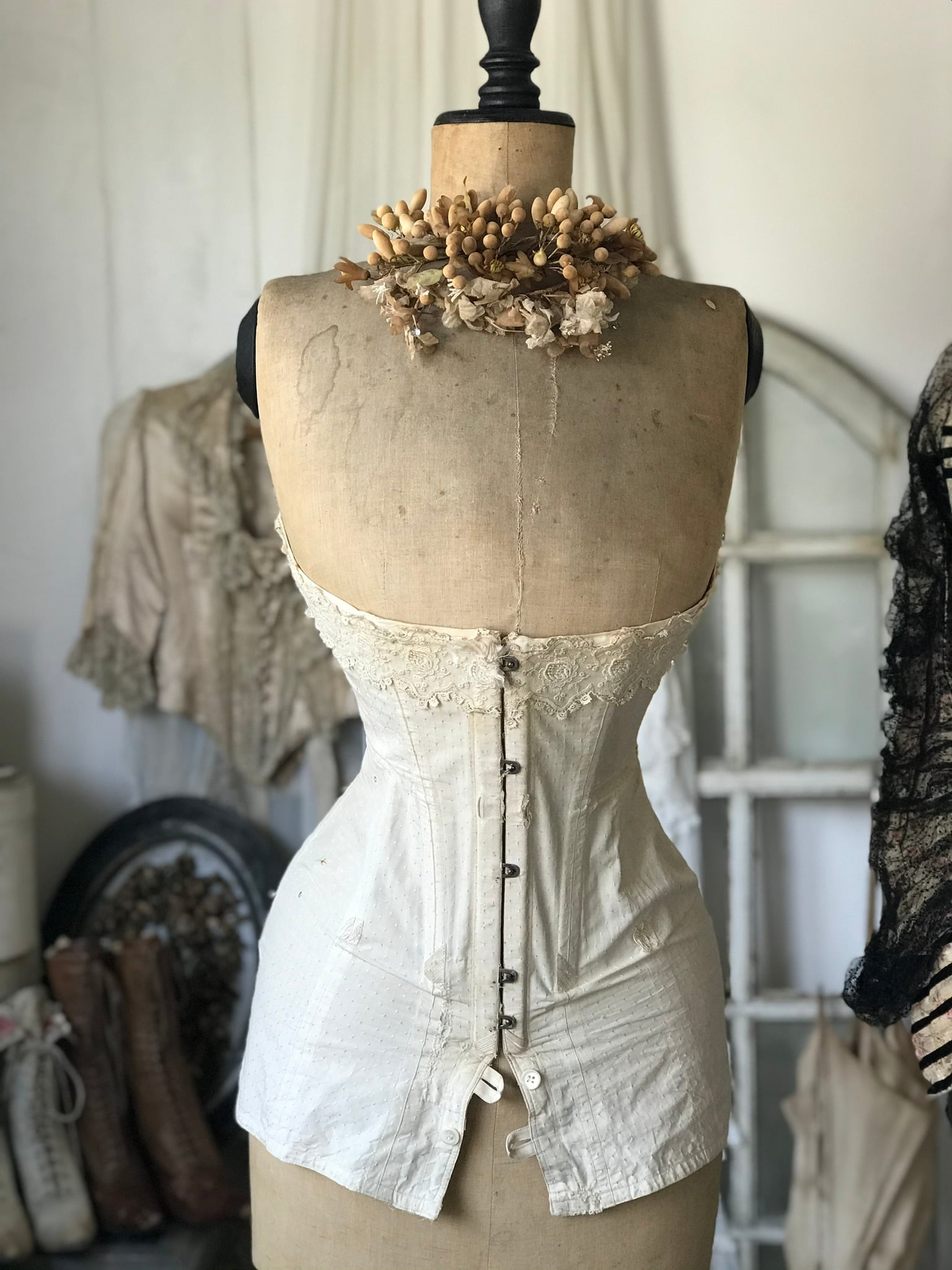 ウエストのカーブを長く知り尽くした経験豊富なコルセットなだけあり、トルソーに着せるとたちまちに素敵なラインを見せてくれます。