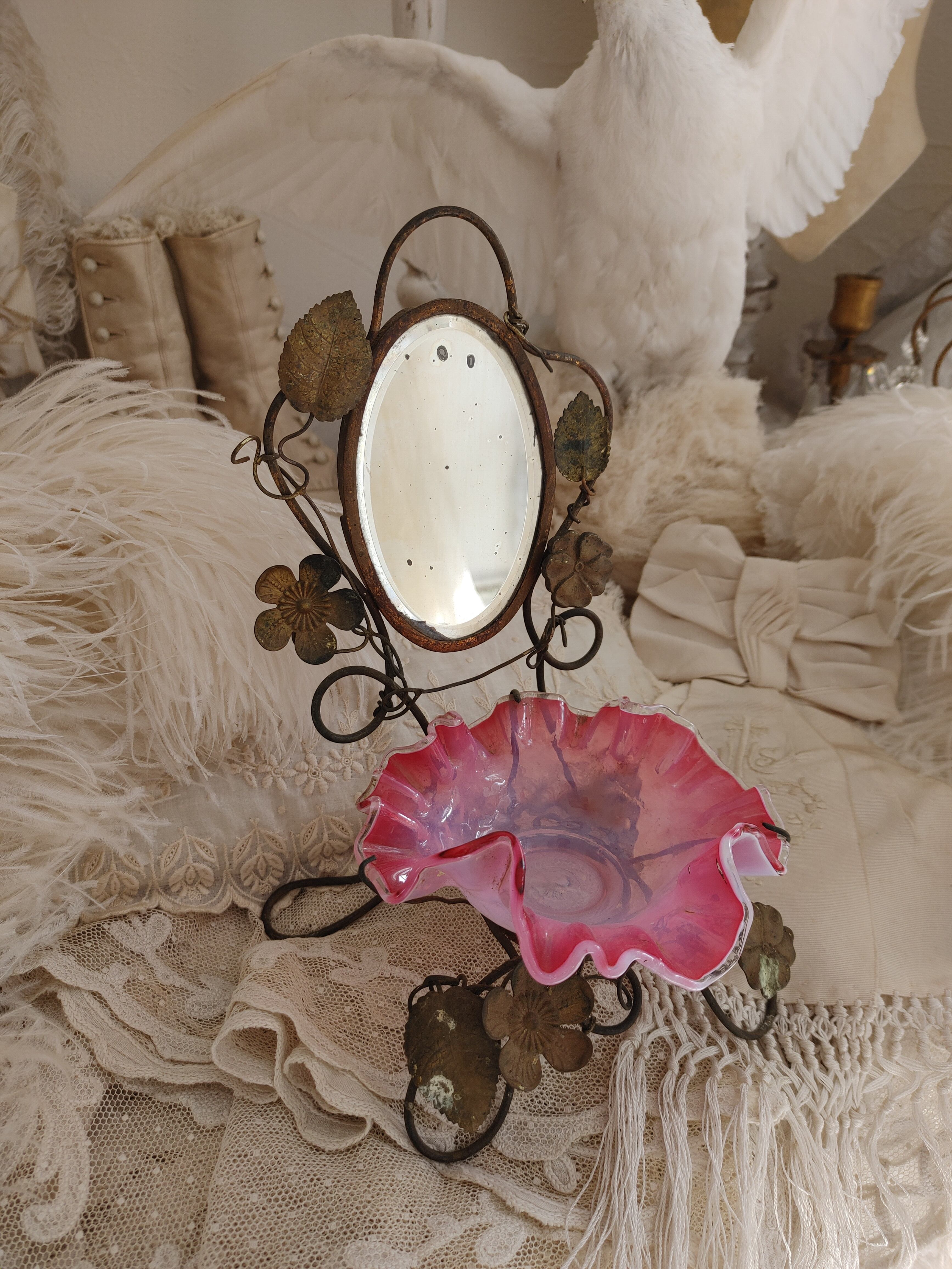 また鏡も黒点状の錆びが見られますが、海外ではこの劣化のある鏡の方が人気があり、本格的なブロカントアイテムとして目を引くアイテムです。