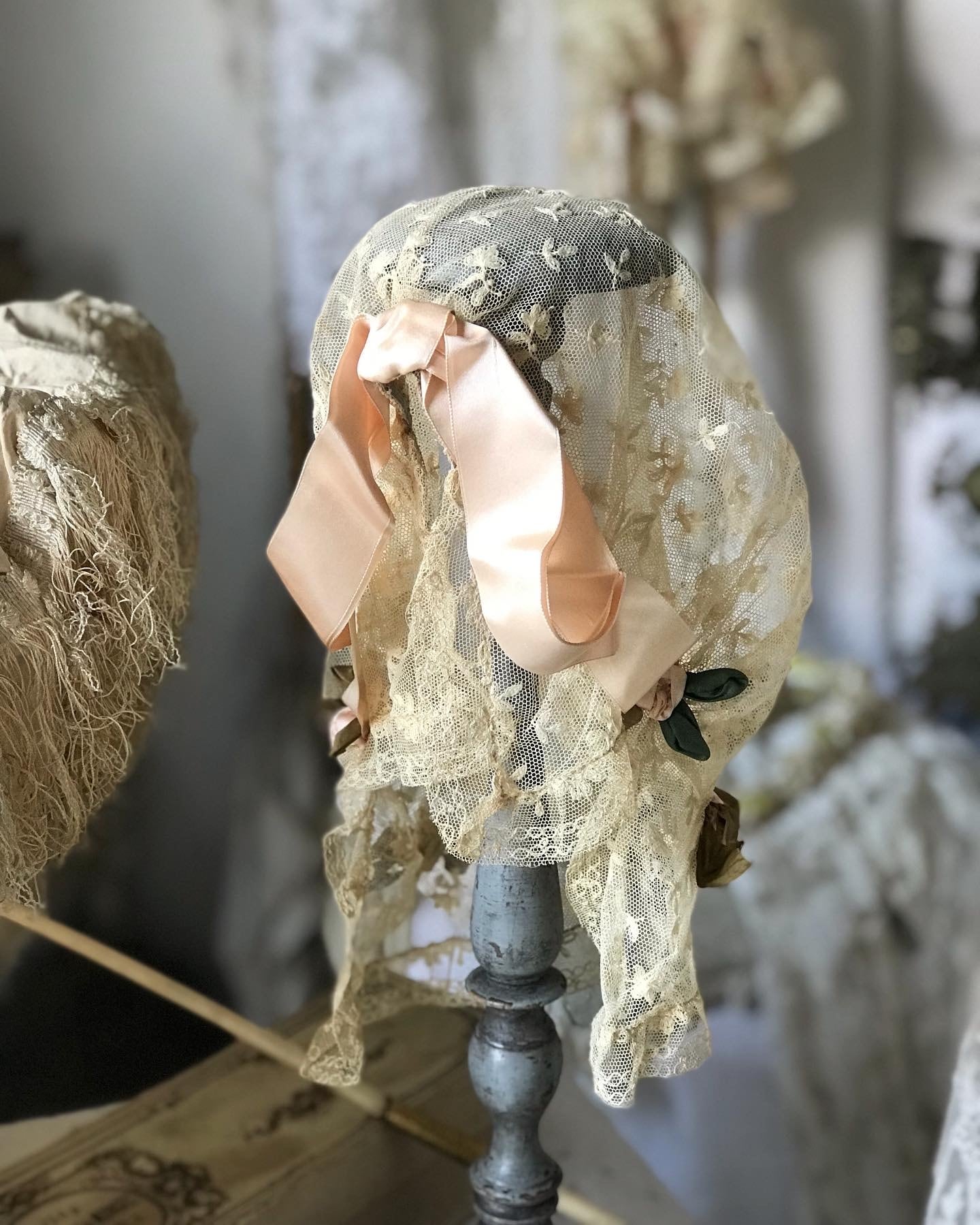1910s ブドワール シルクロゼットチュールボンネット