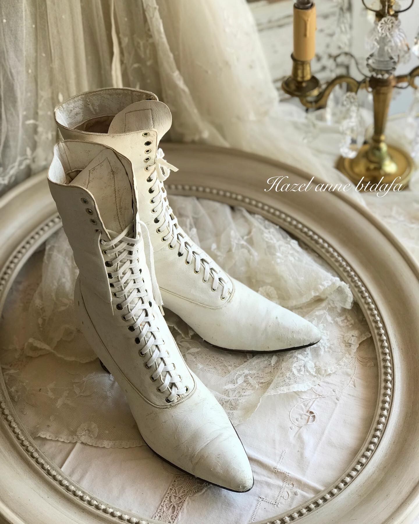 ヴィクトリアン キッドレザー ホワイト レースアップブーツ